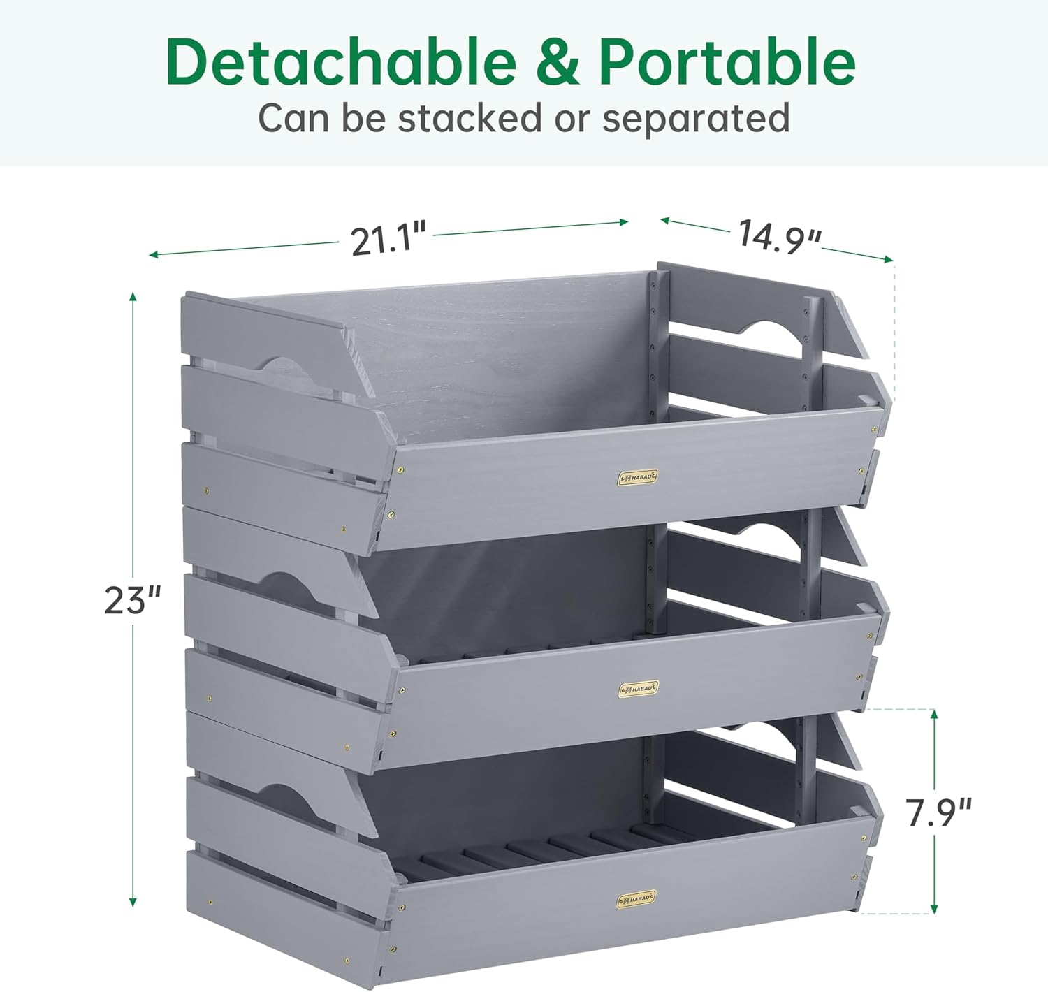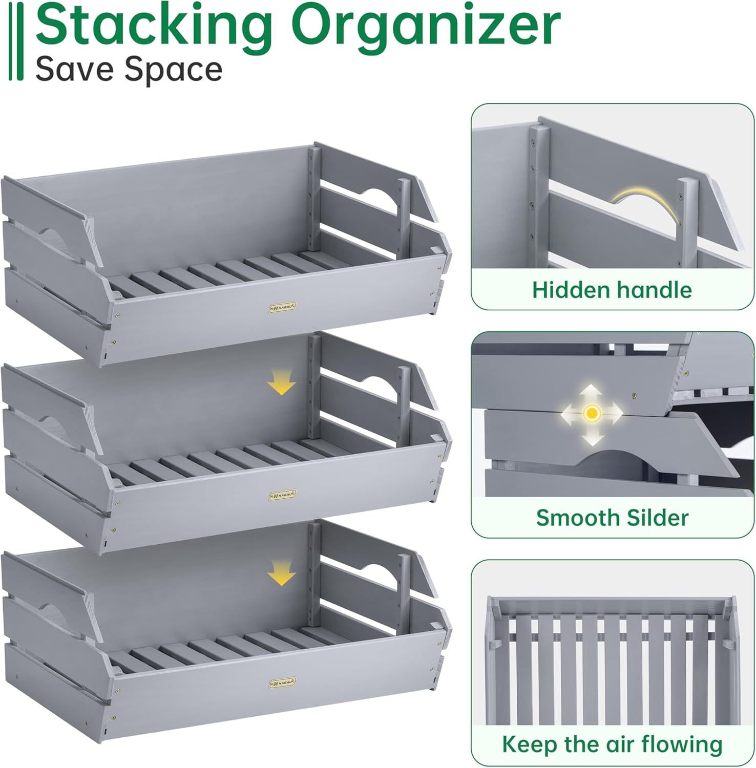HABAU Wood Potato Onion Storage Bins - Wooden Stackable Produce Basket - Fruit Vegetable Storage for Kitchen Pantry Organization, Set 3 Pieces