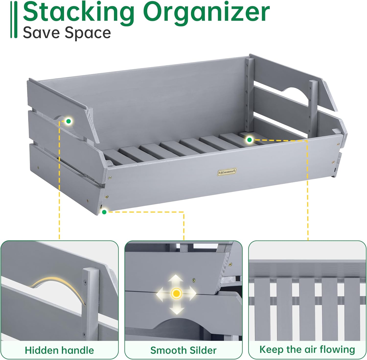 HABAU Wood Potato Onion Storage Bins - Wooden Stackable Produce Basket - Fruit Vegetable Storage for Kitchen Pantry Organization