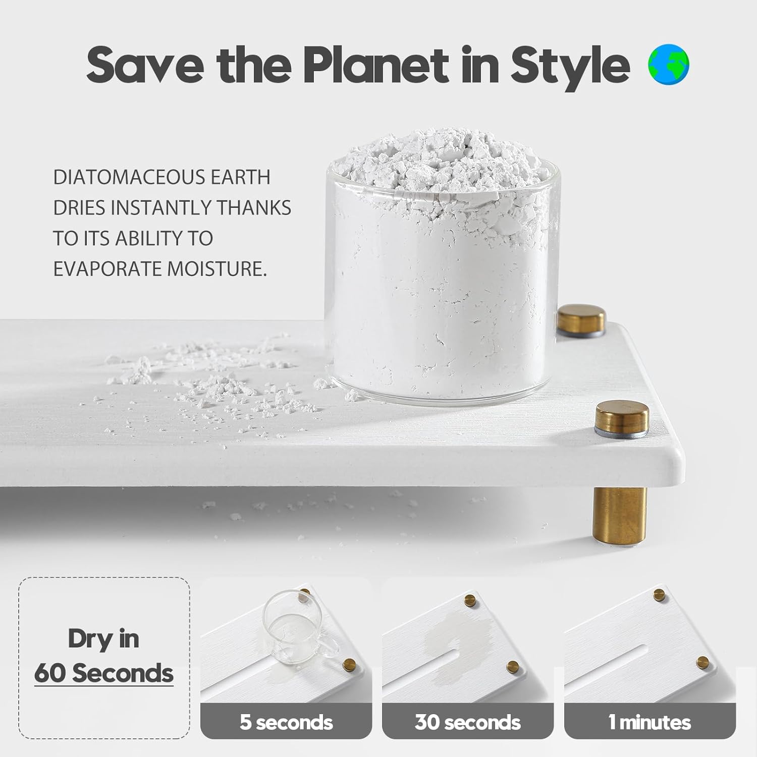 - 【Sustainable Materials】Diatomaceous earth dries instantly thanks to its ability to evaporate water. Safe, Sustainable and Long-lasting.