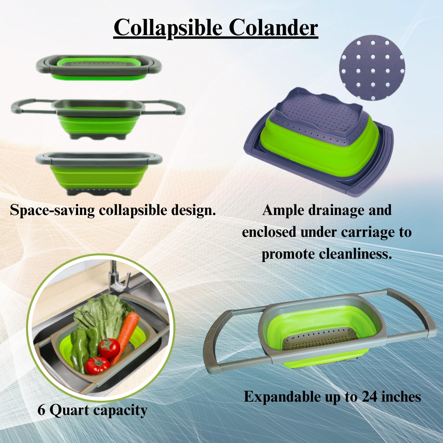 - Space-Saving Colander Design: Our colander is collapsible and features extendable handles. It is designed to easily fit over your sink, allowing you to strain and rinse vegetables and fruits with ease. The collapsible feature makes it compact and easy to store in your kitchen cabinets, saving valuable counter space.