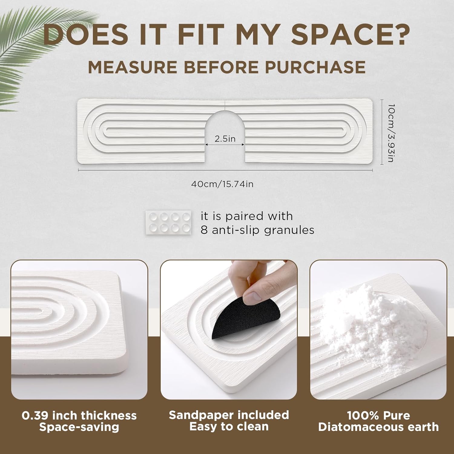 - ๐๐๐๐ & ๐๐ซ๐๐ฆ๐ข๐ฎ๐ฆ ๐๐๐ญ๐๐ซ ๐๐๐ฌ๐จ๐ซ๐ฉ๐ญ๐ข๐จ๐ง: Crafted from 104% natural, odorless, and non-toxic diatomaceous earth, this mat features millions of micropores that rapidly absorb and evaporate moisture. Safe for all ages and free from harmful chemicals, it keeps your sink area clean, dry, and protected from water stains or damage.