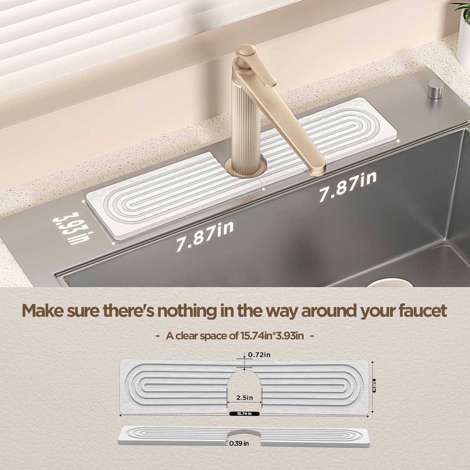 - ๐๐ฎ๐ฅ๐ญ๐ข-๐ฉ๐ฎ๐ซ๐ฉ๐จ๐ฌ๐ & ๐๐๐ซ๐ฌ๐๐ญ๐ข๐ฅ๐: Ideal not only as a faucet mat but also as a dish-drying mat, bathroom countertop mat, and anywhere you need quick absorption and drying. This faucet mat is perfect for all sink faucets in bathrooms, kitchens, RVs, and cafes. Keep your kitchen tidy and dry