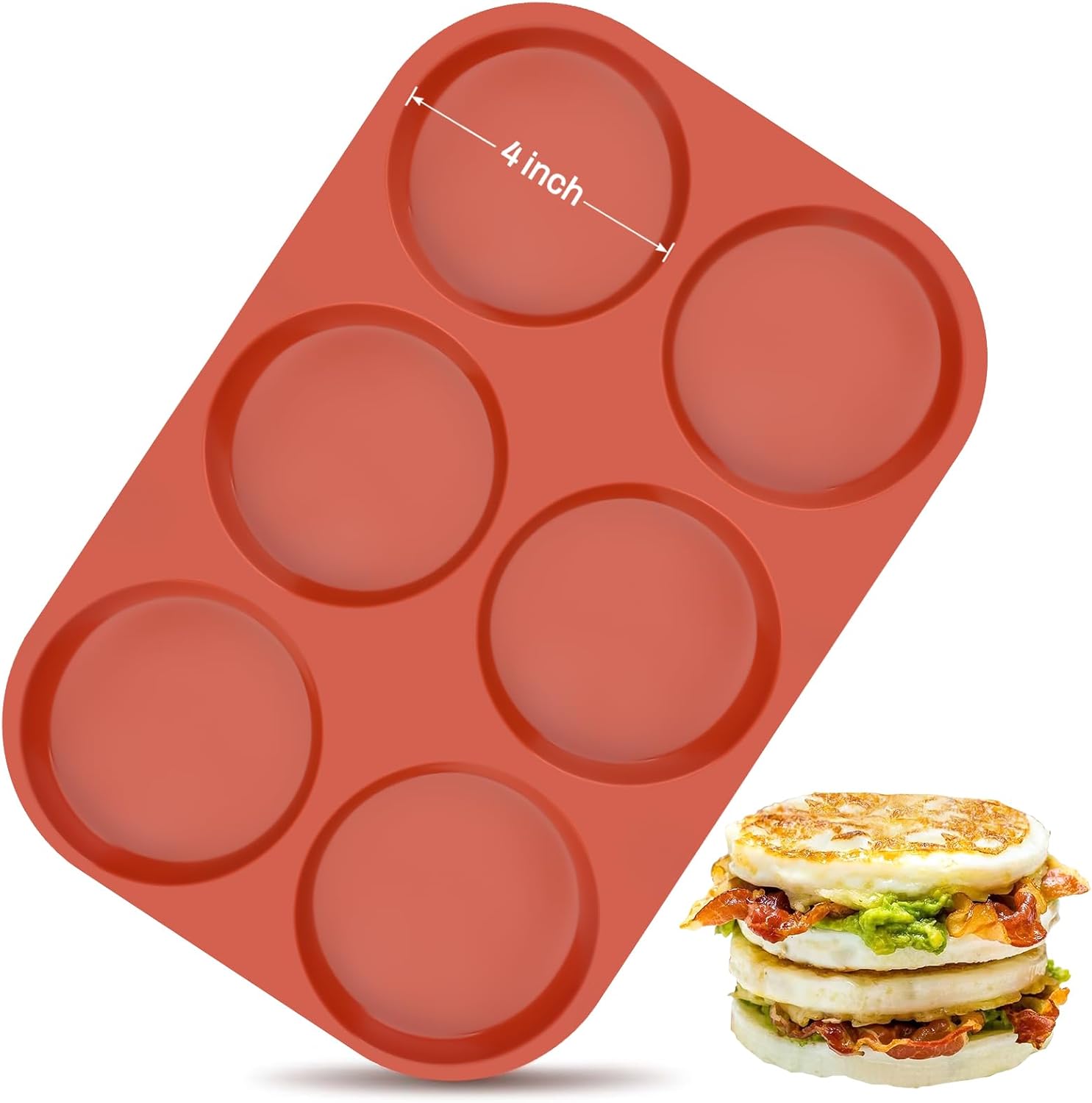Ocmoiy 4 Inch Silicone Egg Mold for Breakfast Sandwiches, 1 Pack Non-Stick Silicone Jumbo Muffin Top/Hamburger Bun Pan Eggs Bites Mold for Oven Baking Egg Patty, Pancake, Frittata