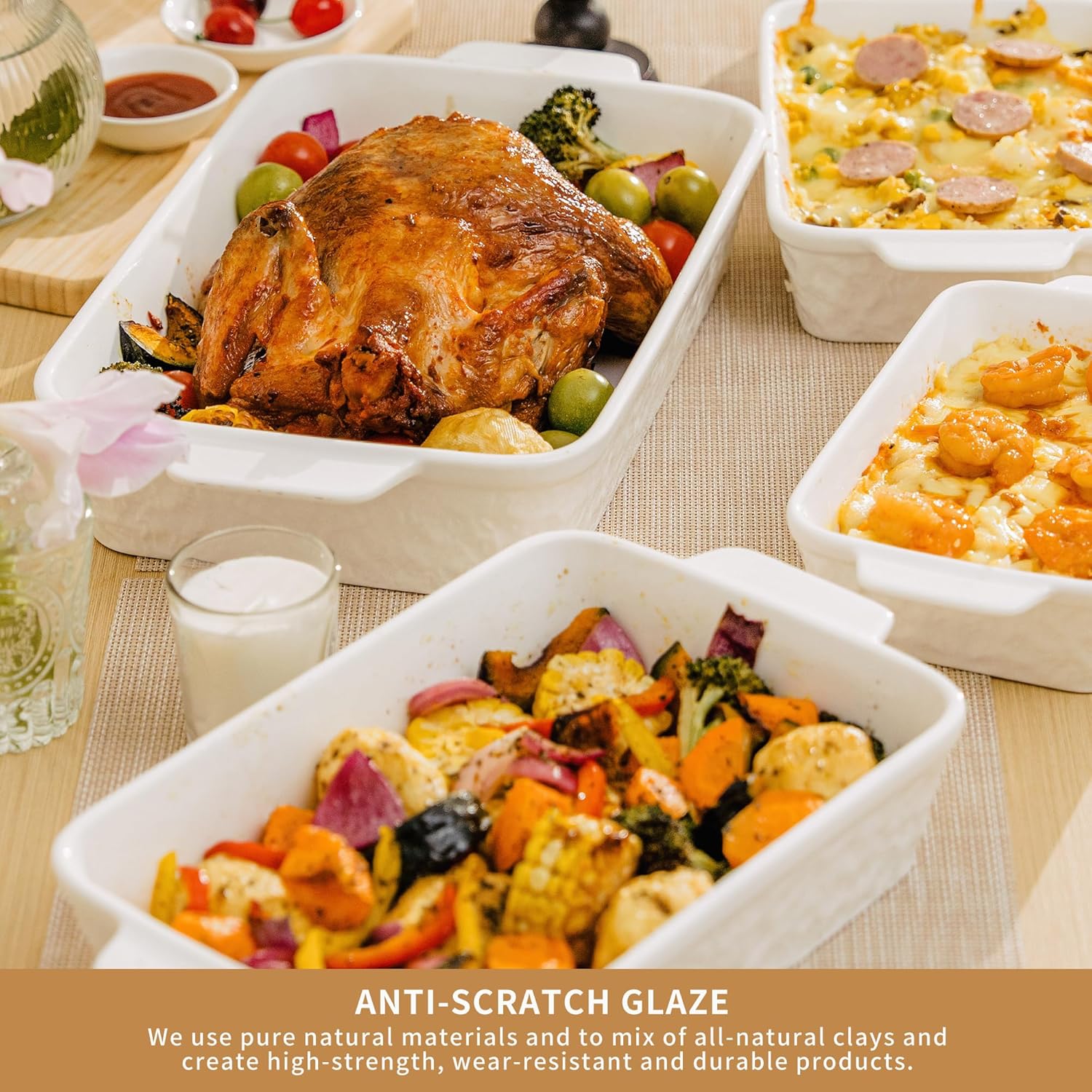 - Crafted from Premium Porcelain for Lasting Use: Made with high-quality, lead-free, and non-toxic ceramic, these casserole dishes are built to resist chips, scratches, and stains. The smooth, glossy finish makes cleaning a breeze while adding a touch of elegance to your kitchen. Safe to use in the dishwasher, microwave, oven, and refrigerator—designed for both durability and everyday convenience. Choose DAFUCERAMIC for quality that lasts