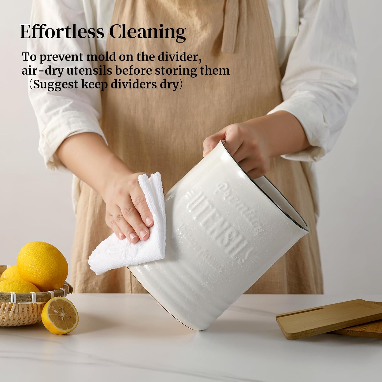 - 3-Section Design with Removable Divider: This extra-large utensil holder features a removable divider that creates three sections, allowing you to sort your utensils by type and keep them organized. The divider lifts out easily for hassle-free cleaning and flexible storage