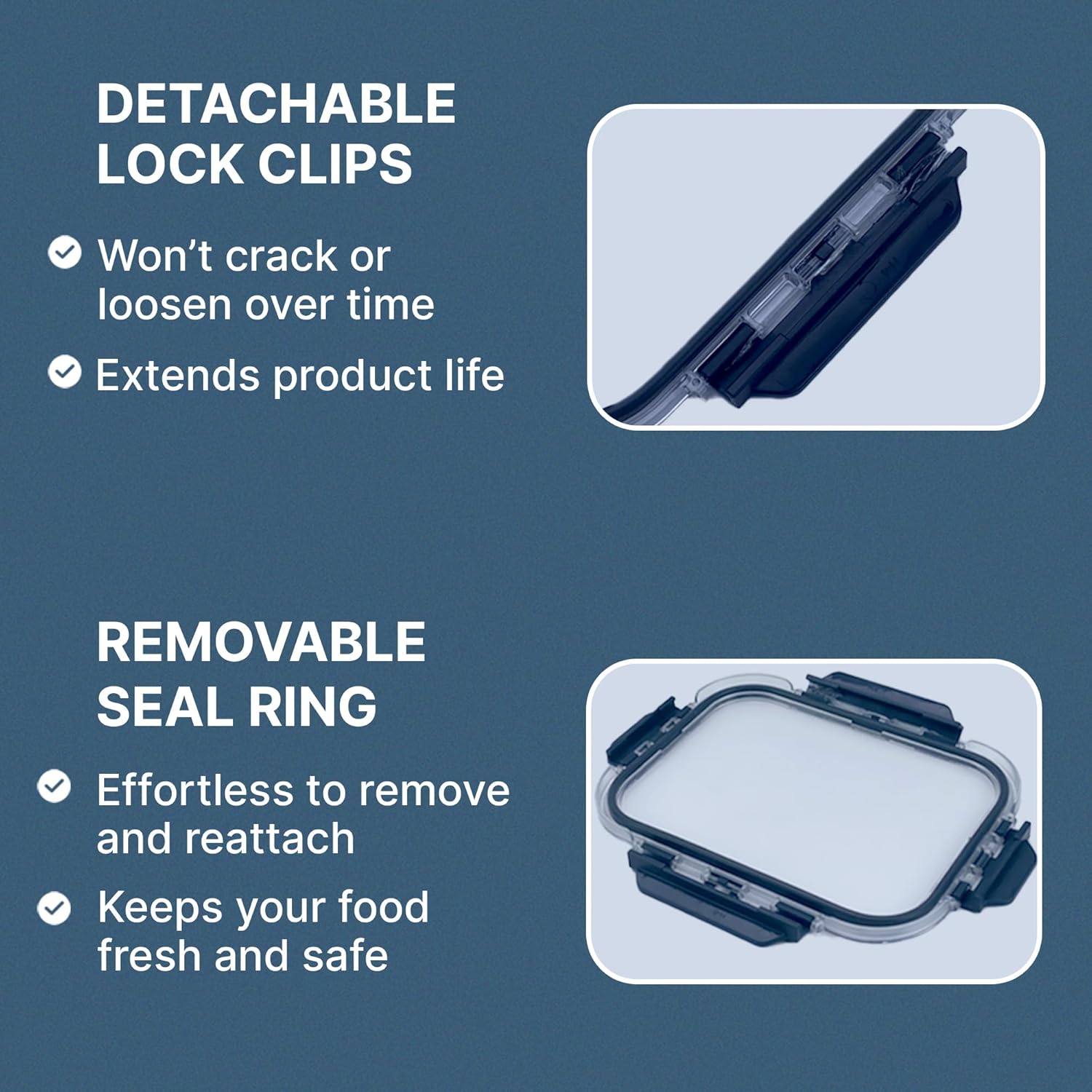 - AIRTIGHT & LEAKPROOF SEAL – Each lid features a BPA-free plastic top with a premium silicone ring that locks in freshness, prevents leaks, and keeps food secure whether at home, work, or on the go.