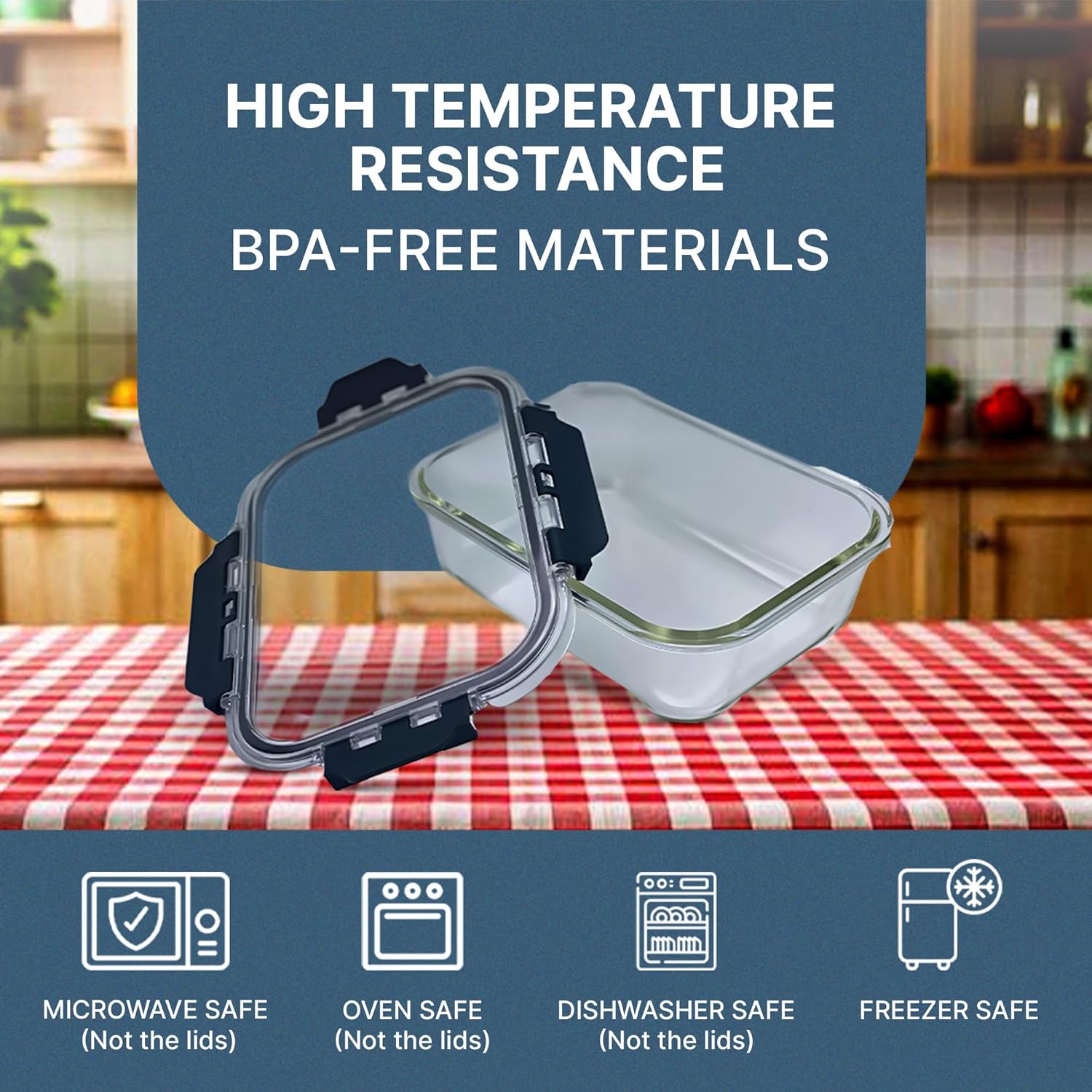 - OVEN, MICROWAVE & FREEZER SAFE – Made from high-quality borosilicate glass, these containers withstand extreme temperatures (oven safe up to 400°C). Heat, freeze, bake, or reheat with total confidence. (Remove lid before oven use).