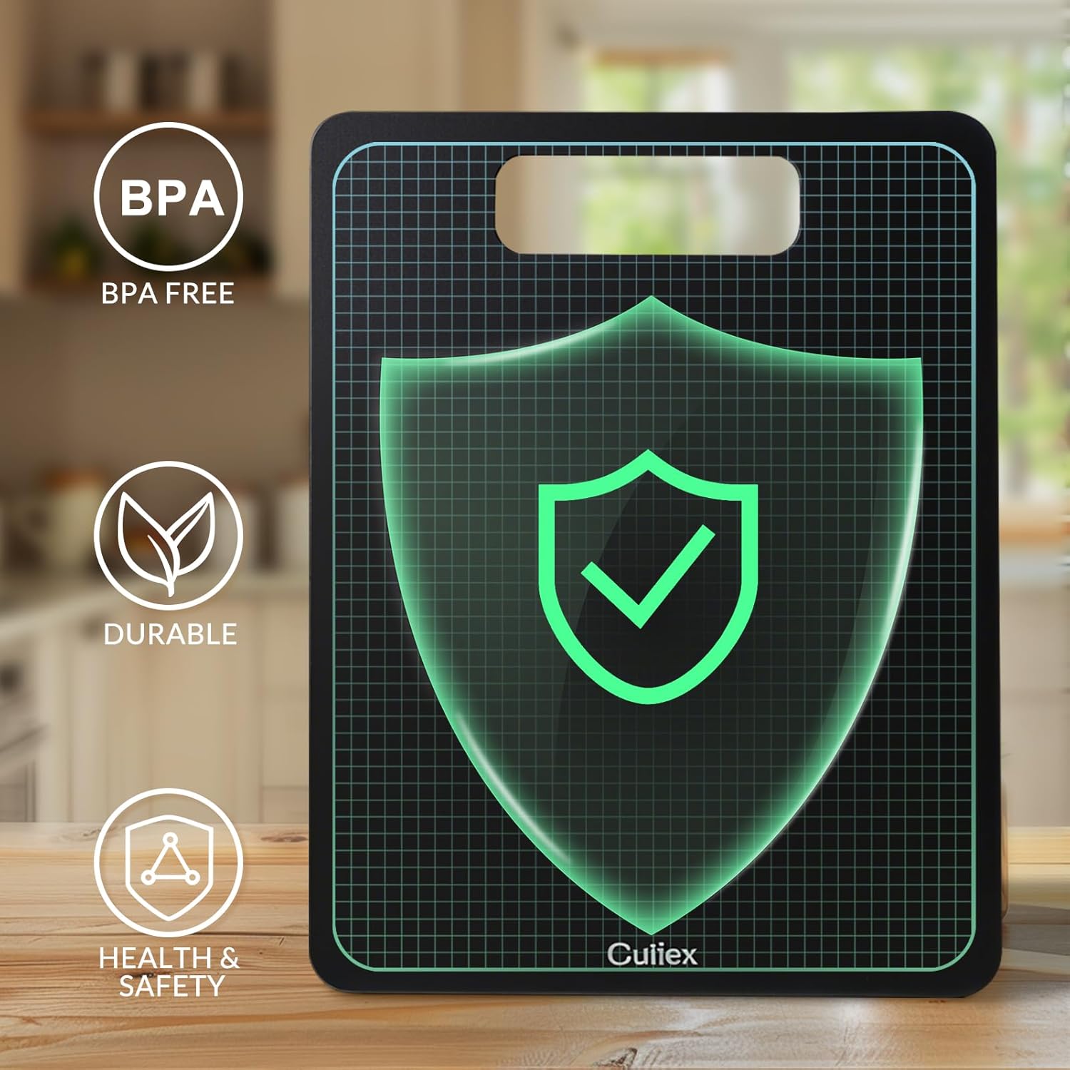 - DURABLE & KNIFE-FRIENDLY: The sturdy surface resists cuts and won’t damage your knives. With heat resistance up to 350°F, non toxic cutting board doubles as a trivet or serving tray. Built to withstand heavy use, it resists cracking, warping, or splitting. The reliable, non-porous surface ensures long-lasting durability.