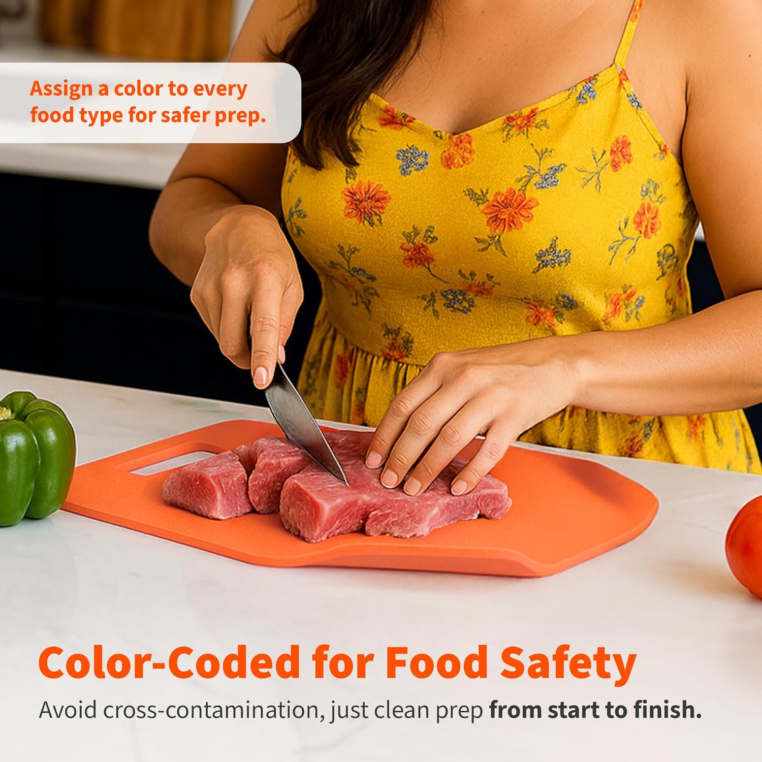 - EASY TO CARRY, LIFT, AND TRANSFER – Each chopping board has built-in handles and a textured surface, making food transfer smoother and more controlled while prepping dishes like arroz con pollo or carne asada.