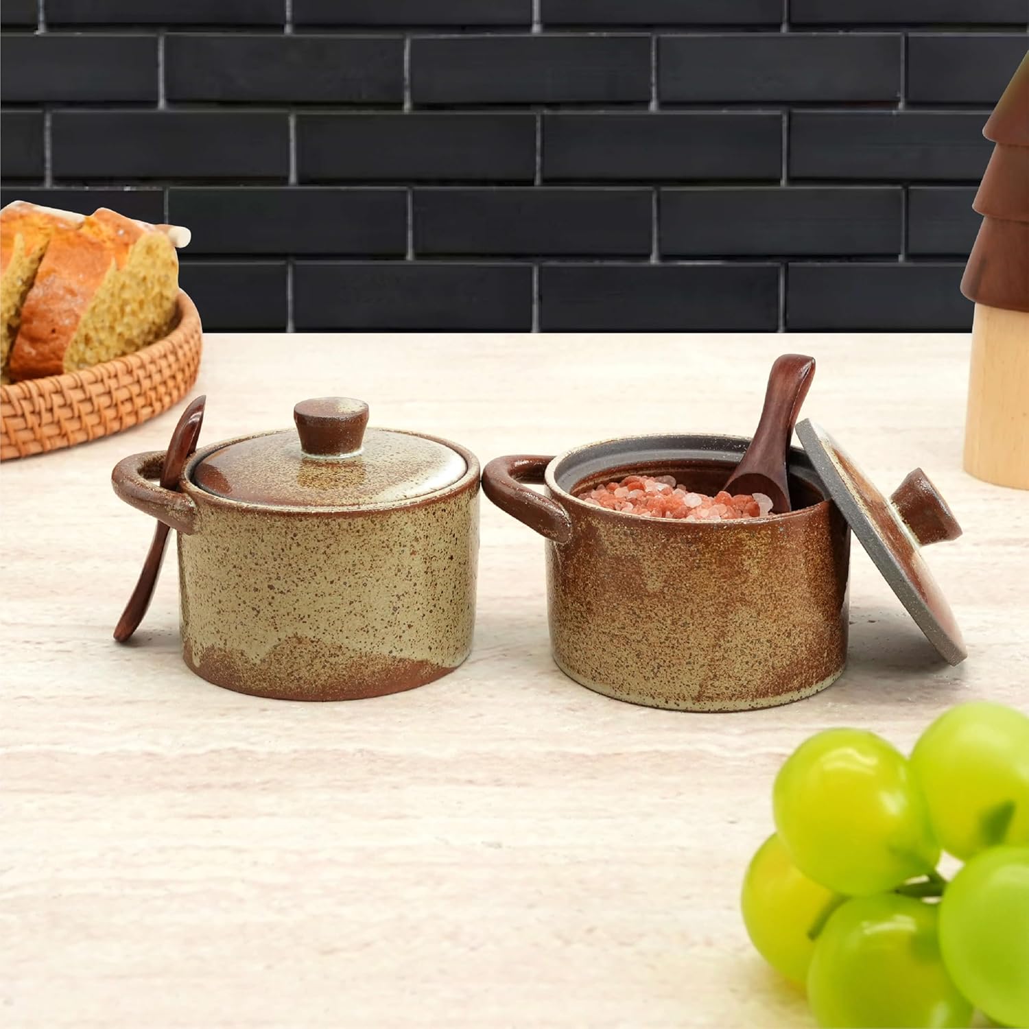 - Handcrafted Vintage Design–Each salt cellar is uniquely handcrafted with a speckled ceramic finish, adding rustic charm and artisan style to your kitchen.