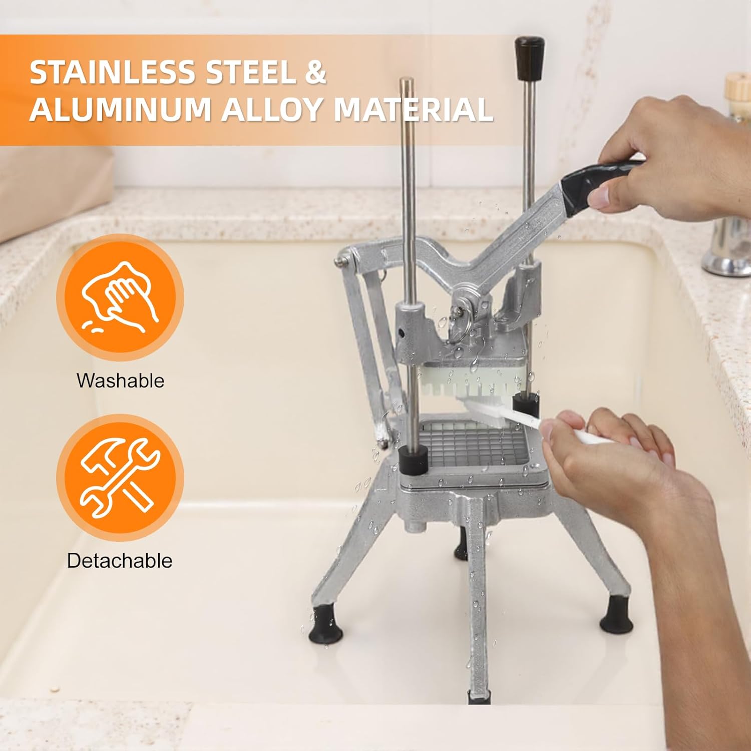 Commercial Vegetable Chopper, Heavy Duty Professional Fruit Dicer with 1/4" Replacement Blade, Stainless Steel French Fry Cutter, Fruit Slicer for Tomato Peppers Potato Mushroom