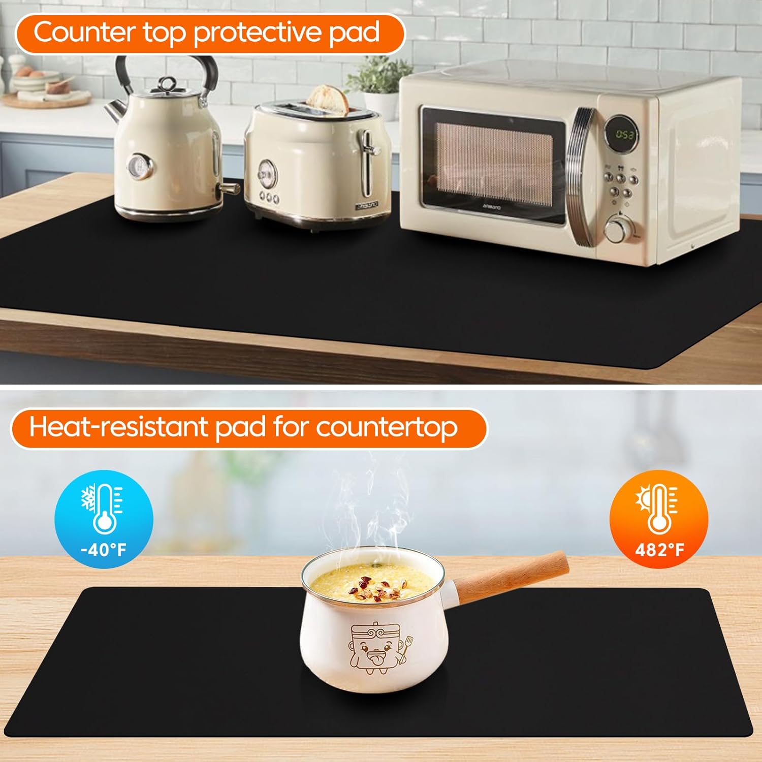 Extra Large Silicone Mat for Kitchen Counter, Heat Resistant Mats for Countertop, Bar mat, Skin-Friendly Surface Countertop Protector Mat, Pet Feeding Pad, Freely Cuttable (Black, 20"x80"x1.6 mm)