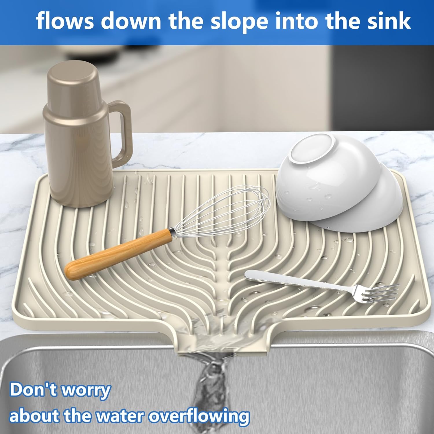 Dish Drying Matt for Kitchen Counter,18"×12"Silicone Dry Rack Mat with Built in Drain, Kitchen Dry Mats for Dishes Drying Pad for Counter(18"×12"Cream)