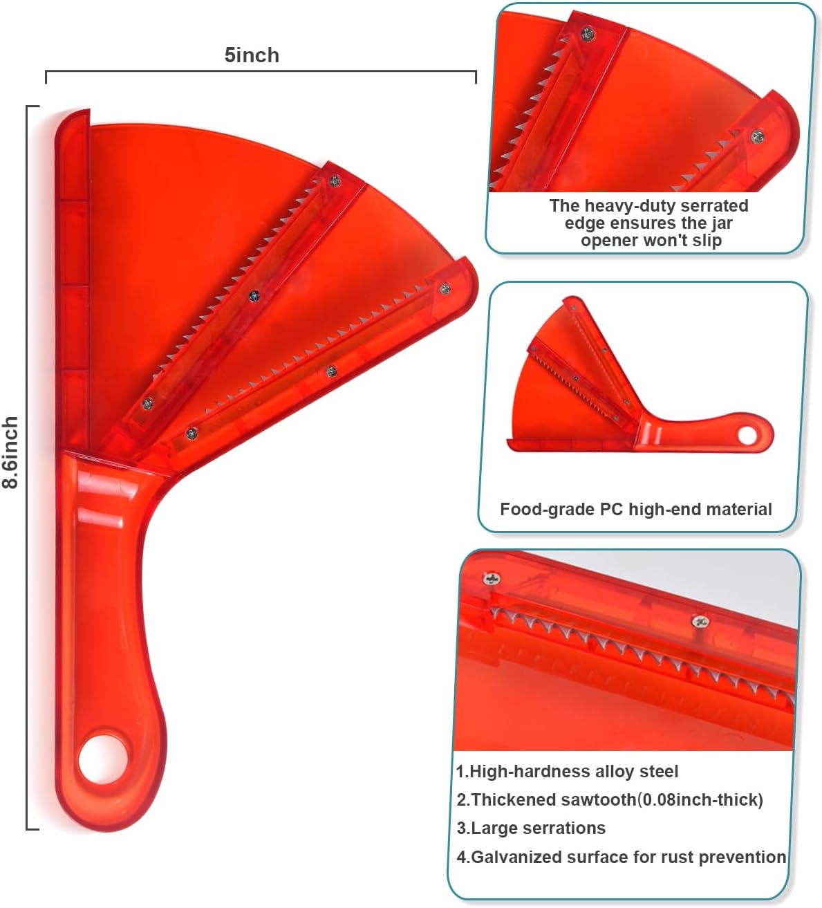 - 💖Our Advantages: This jar opener is made of high-quality food-grade PC material, with a jar opener gripper featuring 0.08inch-thick high-hardness alloy steel teeth. This ensures the lid opener won’t slip, making it a reliable kitchen gadget