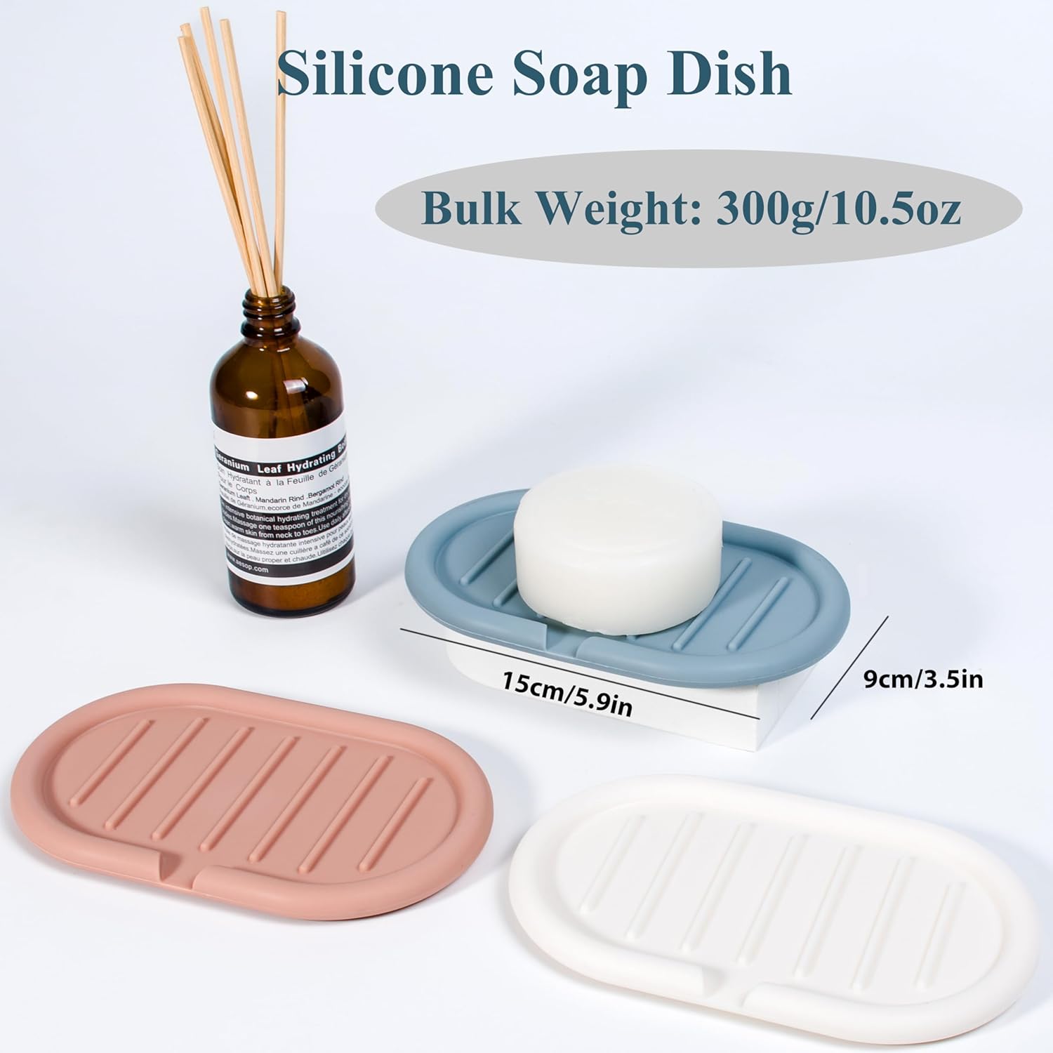 Self-Draining Oval-Shaped Silicone Soap Dish, Soap Holder/Tray/Saver for Shower, Bathroom, Kitchen, Keep Soap Dry, Easy to Clean (3, Light Color)