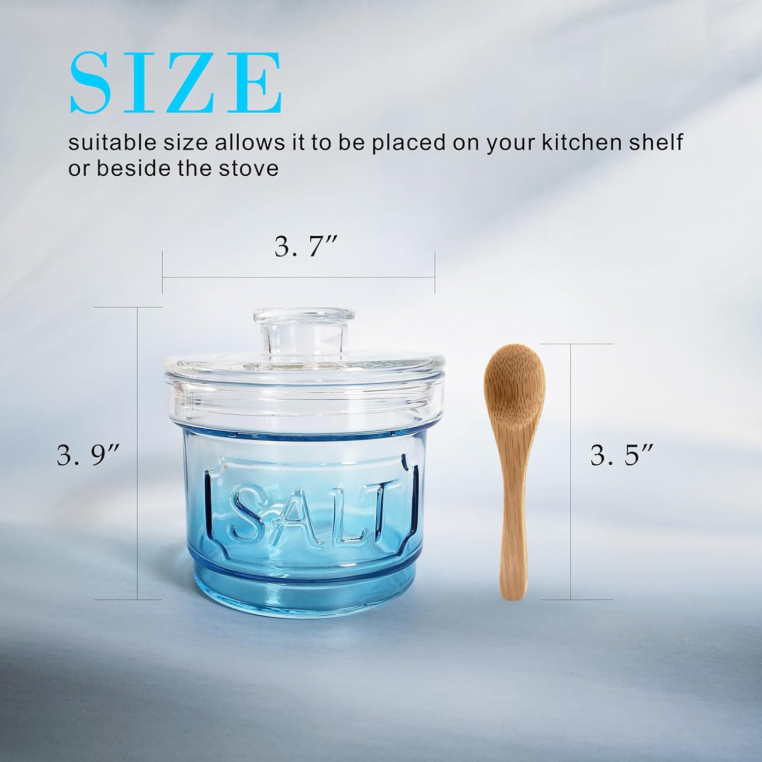 - BUILT IN SPOON:This glass salt holder comes with a small wooden spoon that fits easily inside the jar.It helps control the amount of salt precisely when scooping,making your cooking process more convenient