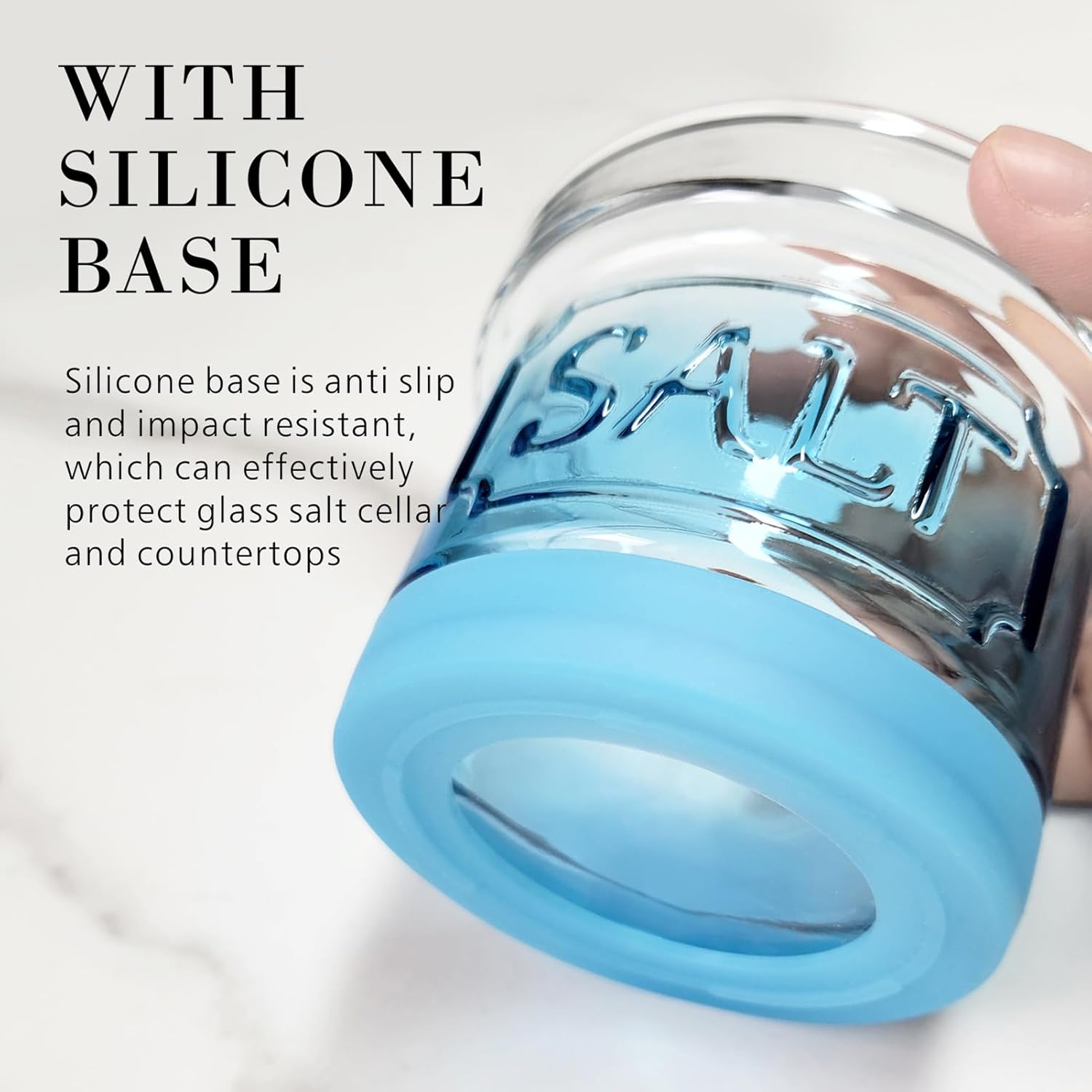 - WITH SILICONE BASE:We have installed a non slip and impact resistant silicone base for the salt Container,You can easily place the glass salt cellar on the marble countertop,It can also protect your wooden countertop
