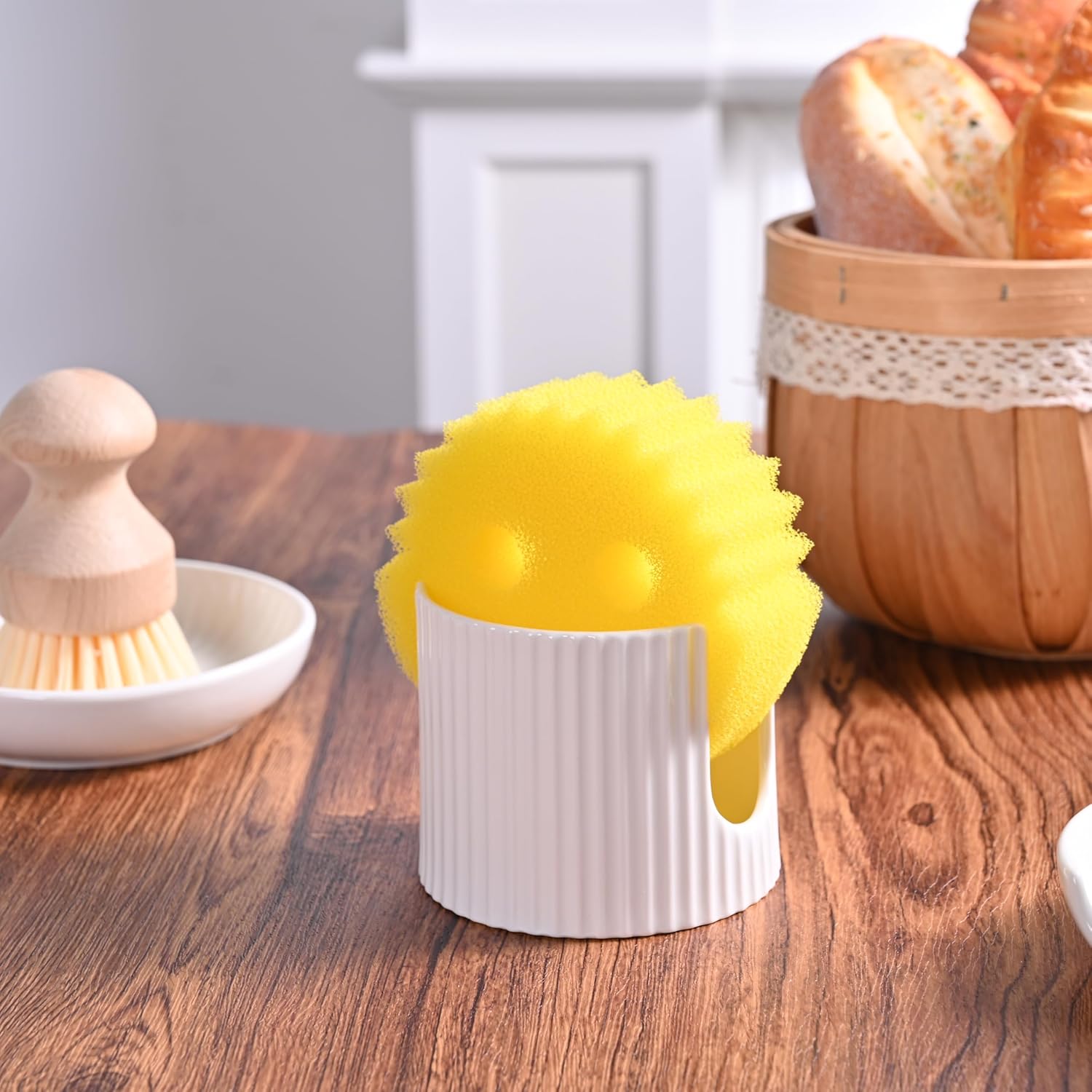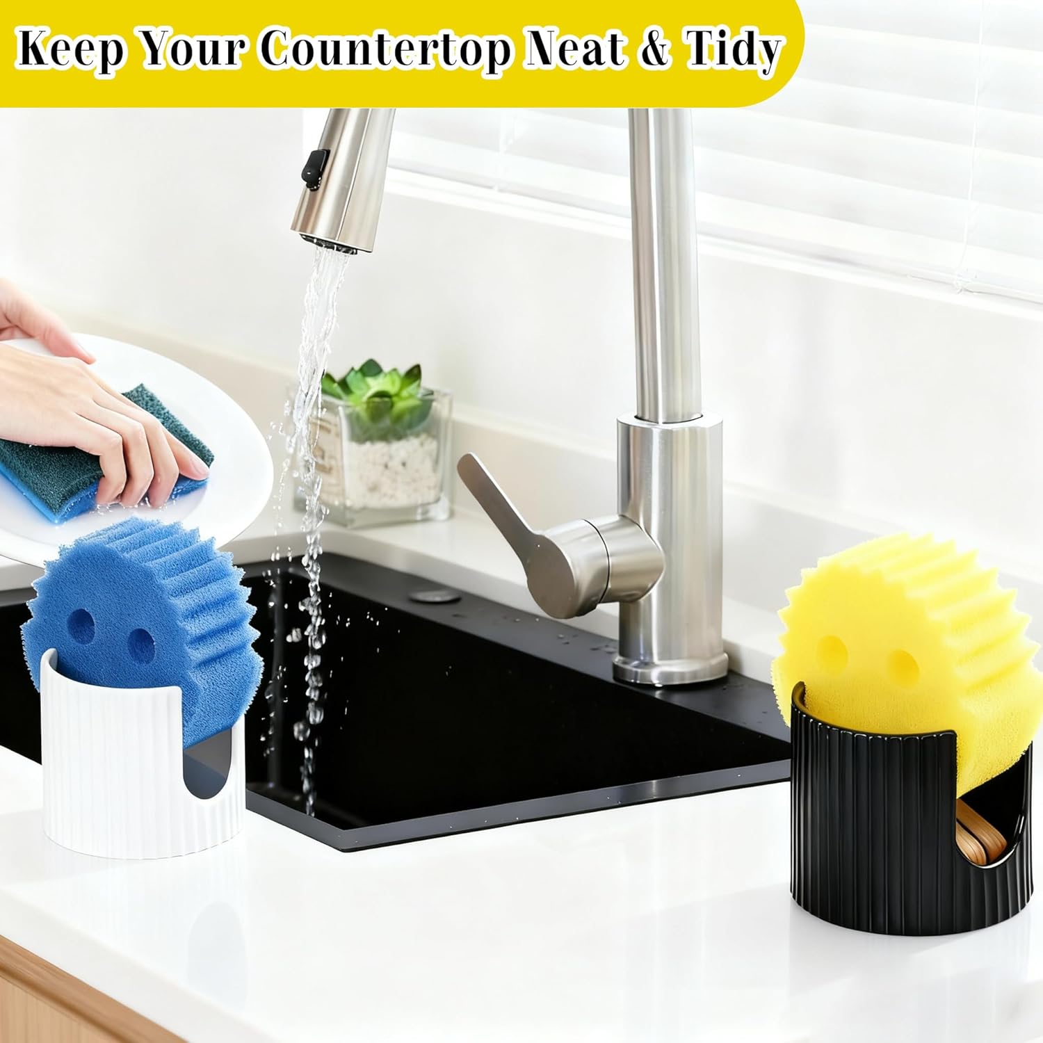 - Practical Storage for Sponges & Scrubbers: Measuring 3.4 inches (8.6cm) in diameter with a 1.3-inch (3.3cm) wide groove, this dish sponge holder is perfectly sized for sponges, scouring pads, and steel wool scrubbers. Its deepened groove keeps items upright, while the weighted base prevents tipping—even when holding wet, heavy sponges—ideal for busy, high-use kitchens.