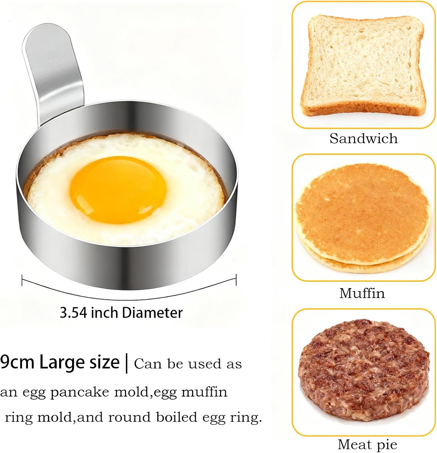 - Versatile Cooking Tool – Works as an egg patty mold, egg mcmuffin ring mold, and round egg cooker ring. Great for frying eggs, making omelets, or shaping crumpets on the griddle.