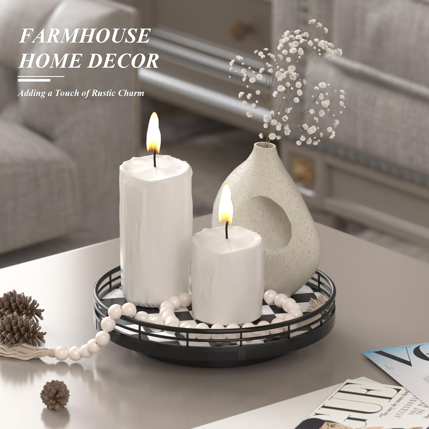 - QUALITY CRAFTSMANSHIP & STYLE – Built with a durable checkered oakwood base and iron frame. From a black check serving tray to a cute lazy susan for table top, it blends seamlessly with modern pottery barn decor styles.