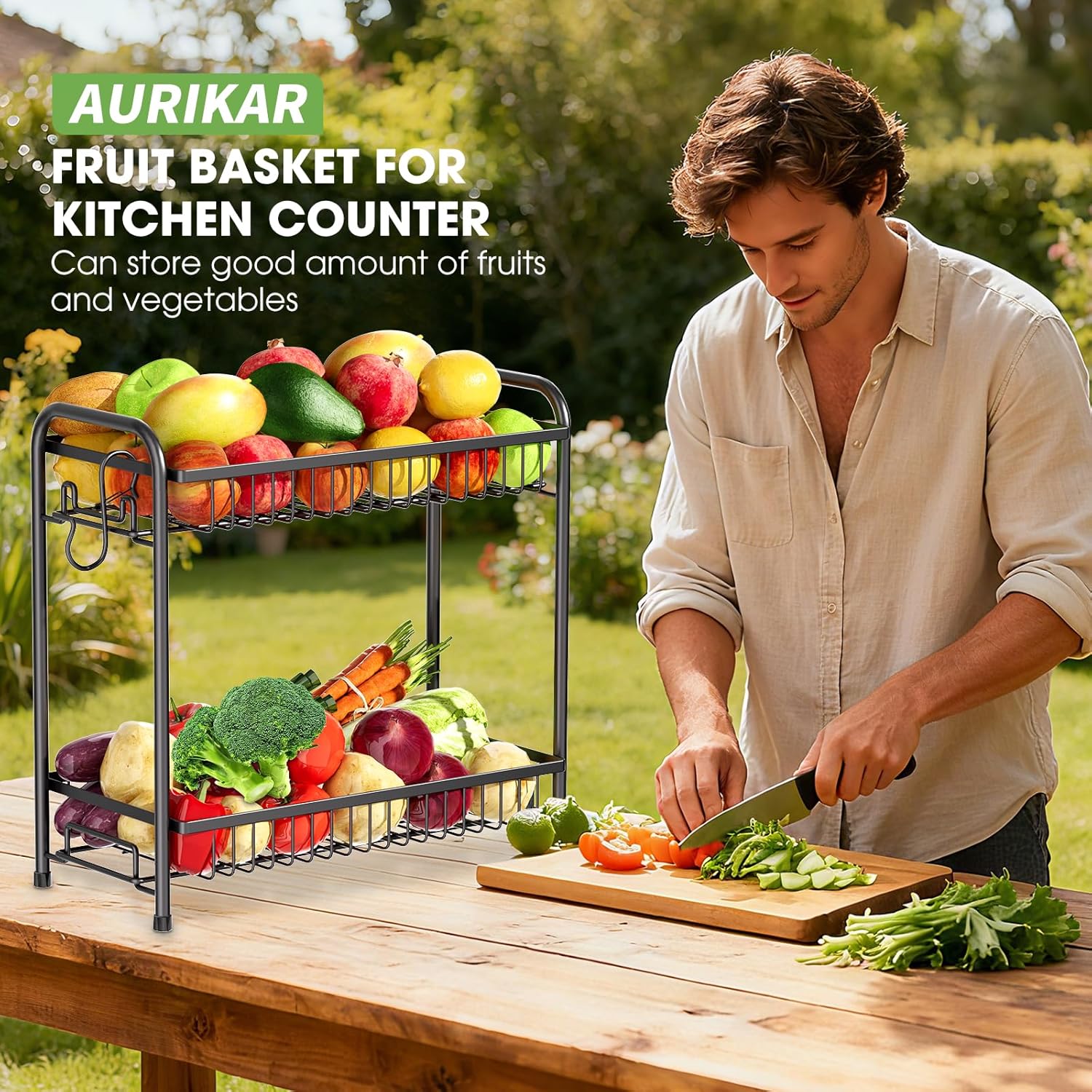 - Multifunctional Fruit Rack: The 2 tier fruit basket serves as an all-in-one organizer, neatly storing not only fruits and vegetables but also bread, snacks, spice jars, and toiletries. Its compact design fits perfectly in the kitchen, bathroom, office, or bedroom, keeping all your essentials tidy and within easy reach