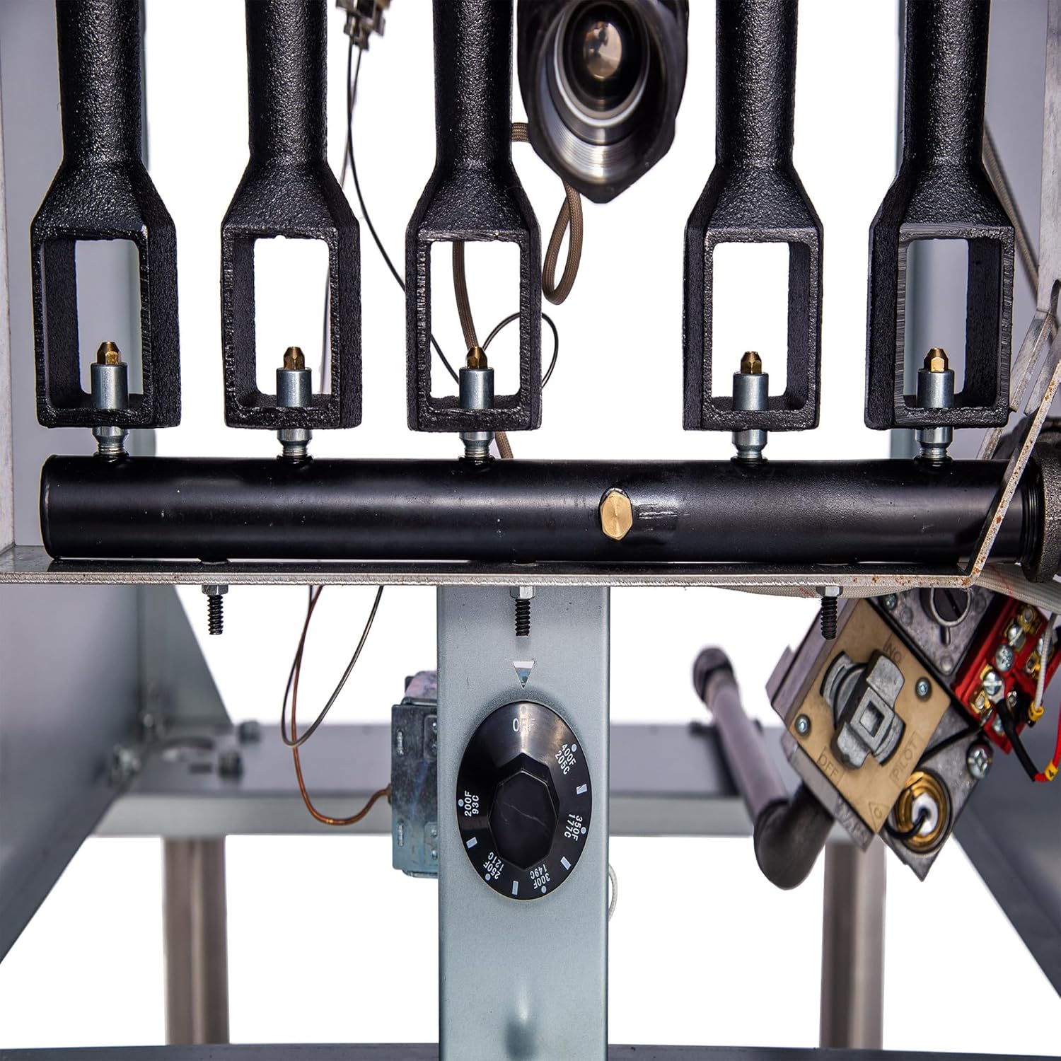 - Adjustable Temperature Control - The temperature of this fryer can be adjusted within the range of 200°F to 400°F (93°C to 205°C). Once the set temperature is reached, the thermostat automatically shuts off the gas to the burner. This feature allows you to set the optimal frying temperature for different types of food. The thermostat control system ensures excellent performance and quick temperature recovery, guaranteeing that your food is cooked to a perfect, crispy finish.