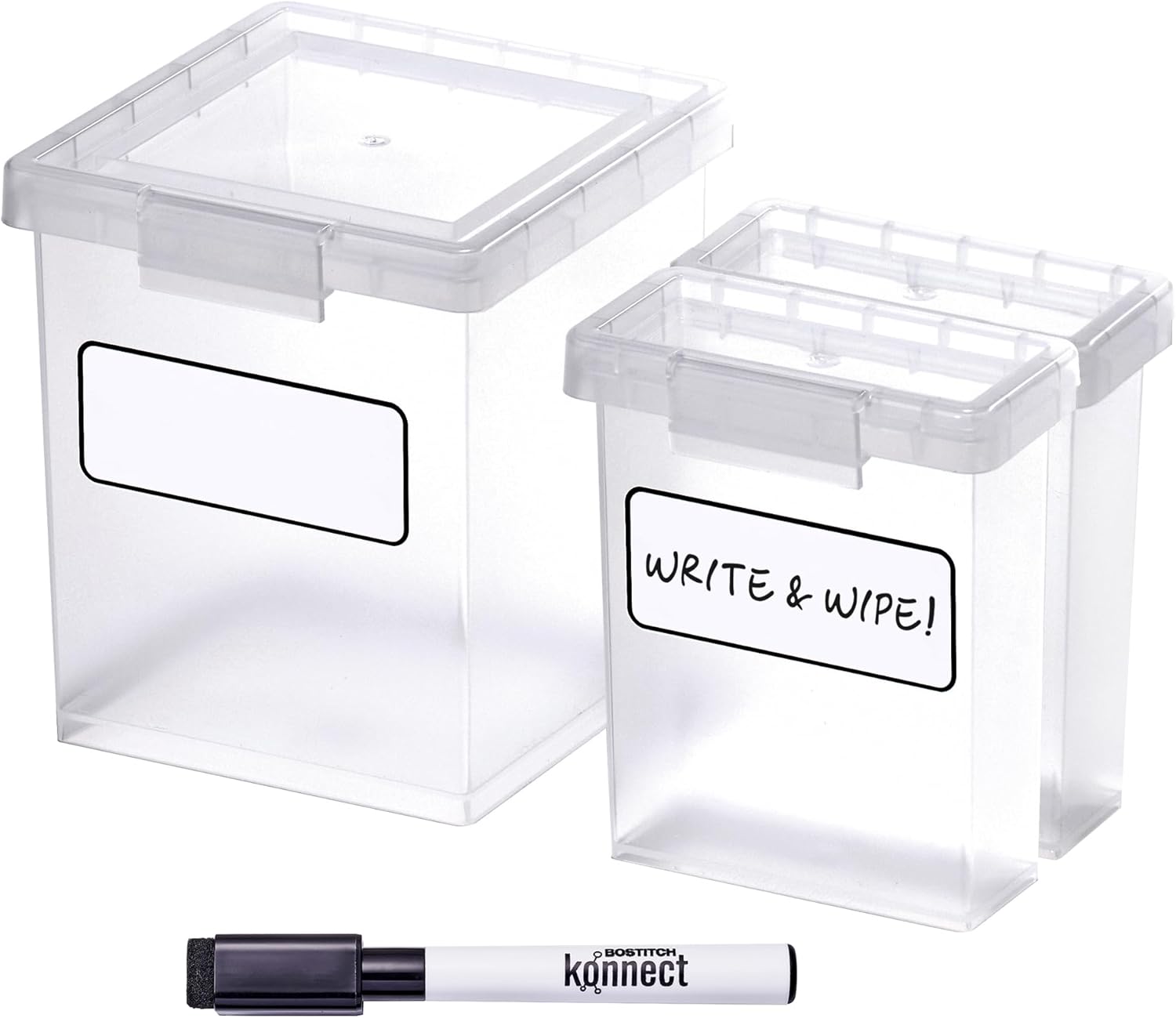 Bostitch Konnect Storage Containers with Lids, Organizer, Clear Plastic Box, Stackable Nesting Bins, 3-Piece Bundle, 1 Medium, 2 Small