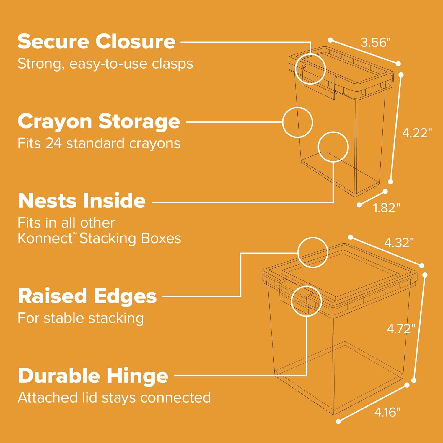 - MAXIMIZE EVERY INCH: Designed to save space whether you're using them or not. Stack with other Konnect storage boxes securely when full, and nest them neatly when empty to keep your storage area tidy and efficient.
