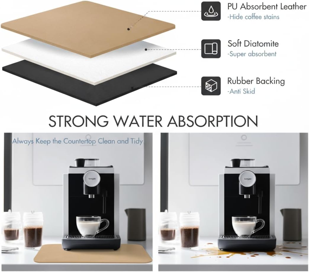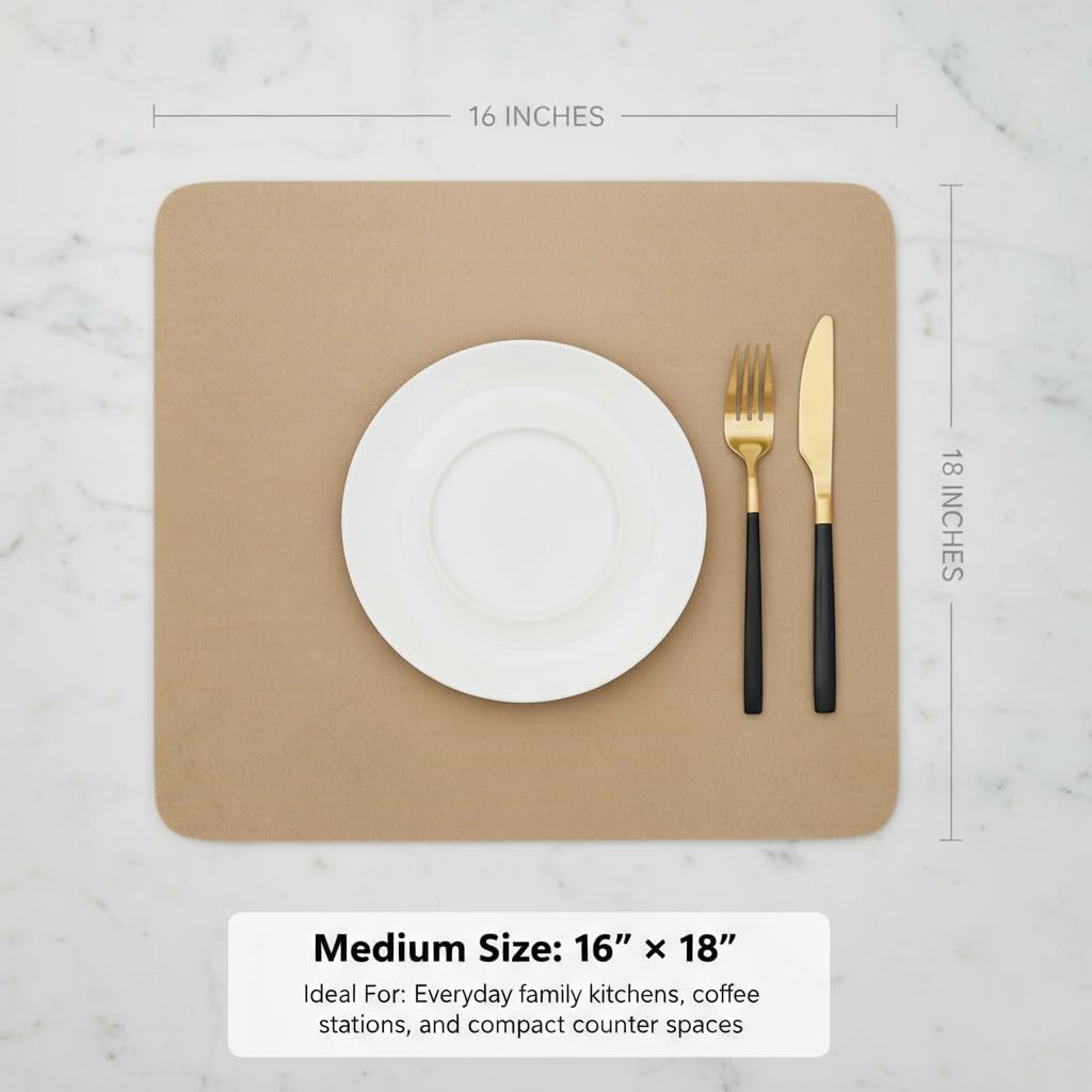 Dish Drying Mat Super Absorbent – 16" x 18" Coffee Mat for Countertops – Non-Slip Drying Mat for Kitchen Counter – Easy to Clean Water Absorbent Mat – Large Dish Drying Mats (Chowning's Tan)