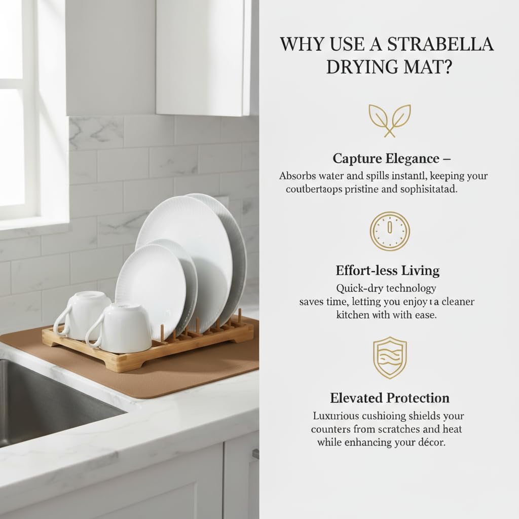 - EXCEPTIONAL ABSORBENCY: Experience the superior absorbent power of our Dish Drying Mat, designed to quickly soak up moisture from freshly washed dishes, ensuring a faster and more efficient drying process.