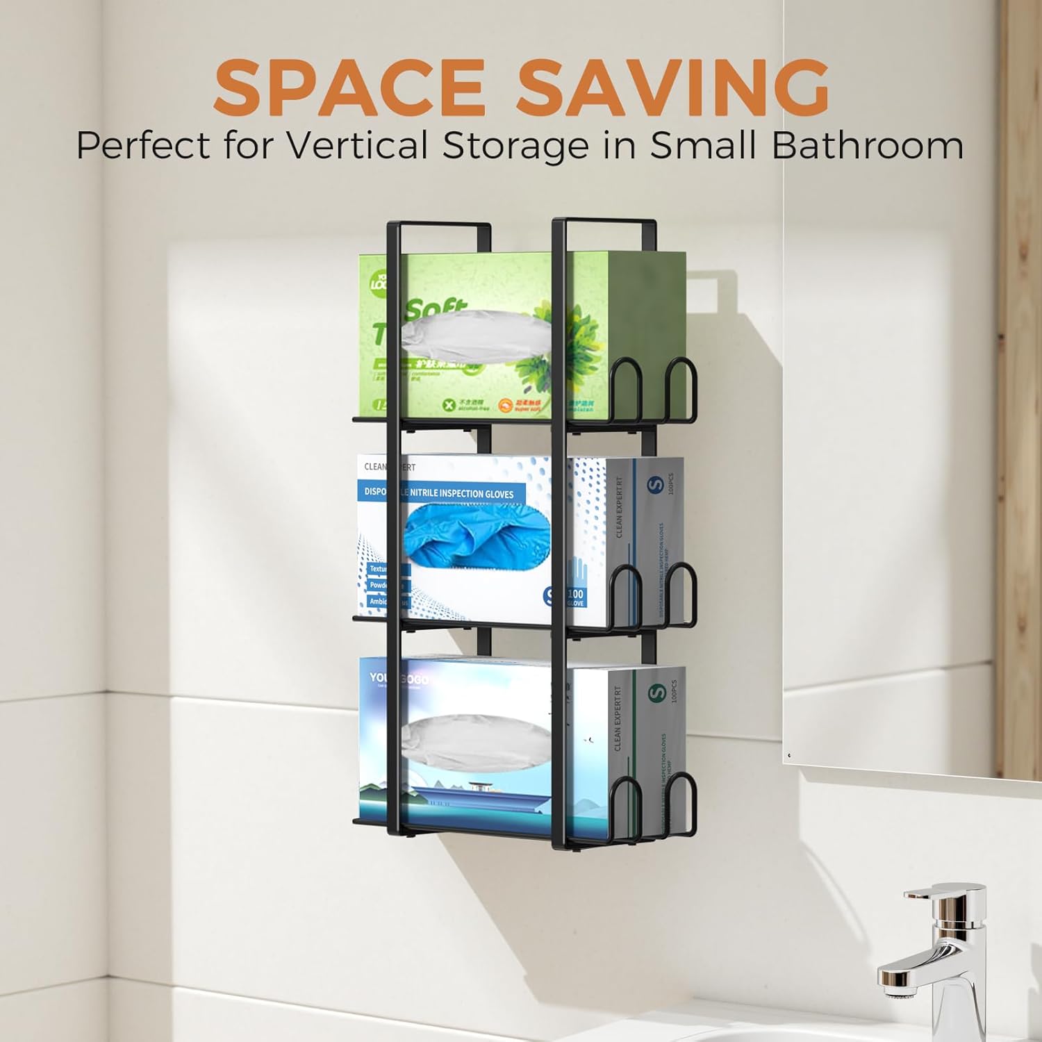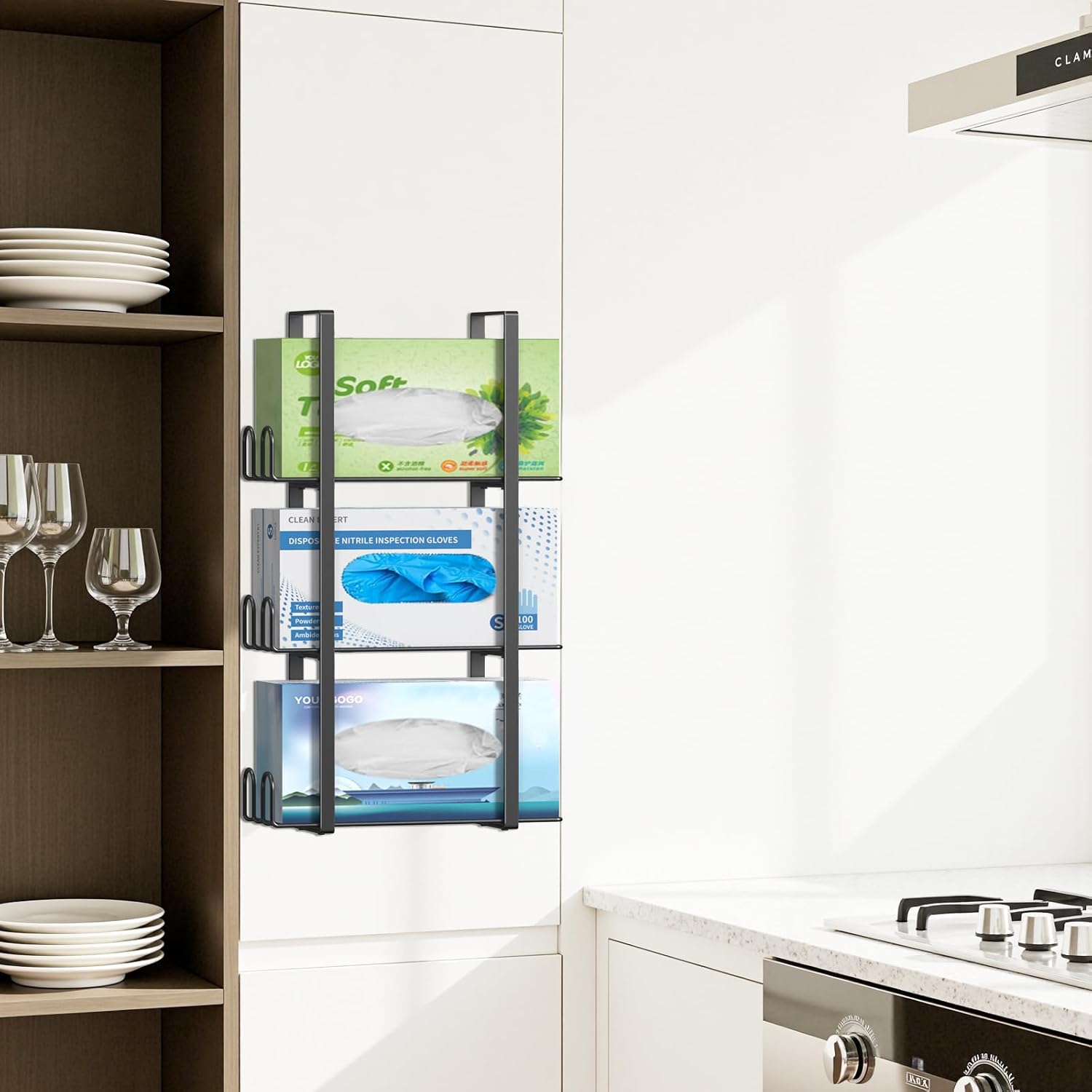 - SPACE SAVING AND ALL IN ONE PLACE - Our three-tier glove box holder, with a compact design, efficiently utilizes vertical space. Keeps your counter area clean, clutter-free, and maximizes functionality. The versatile design allows for the use of different sizes in one glove box holder.