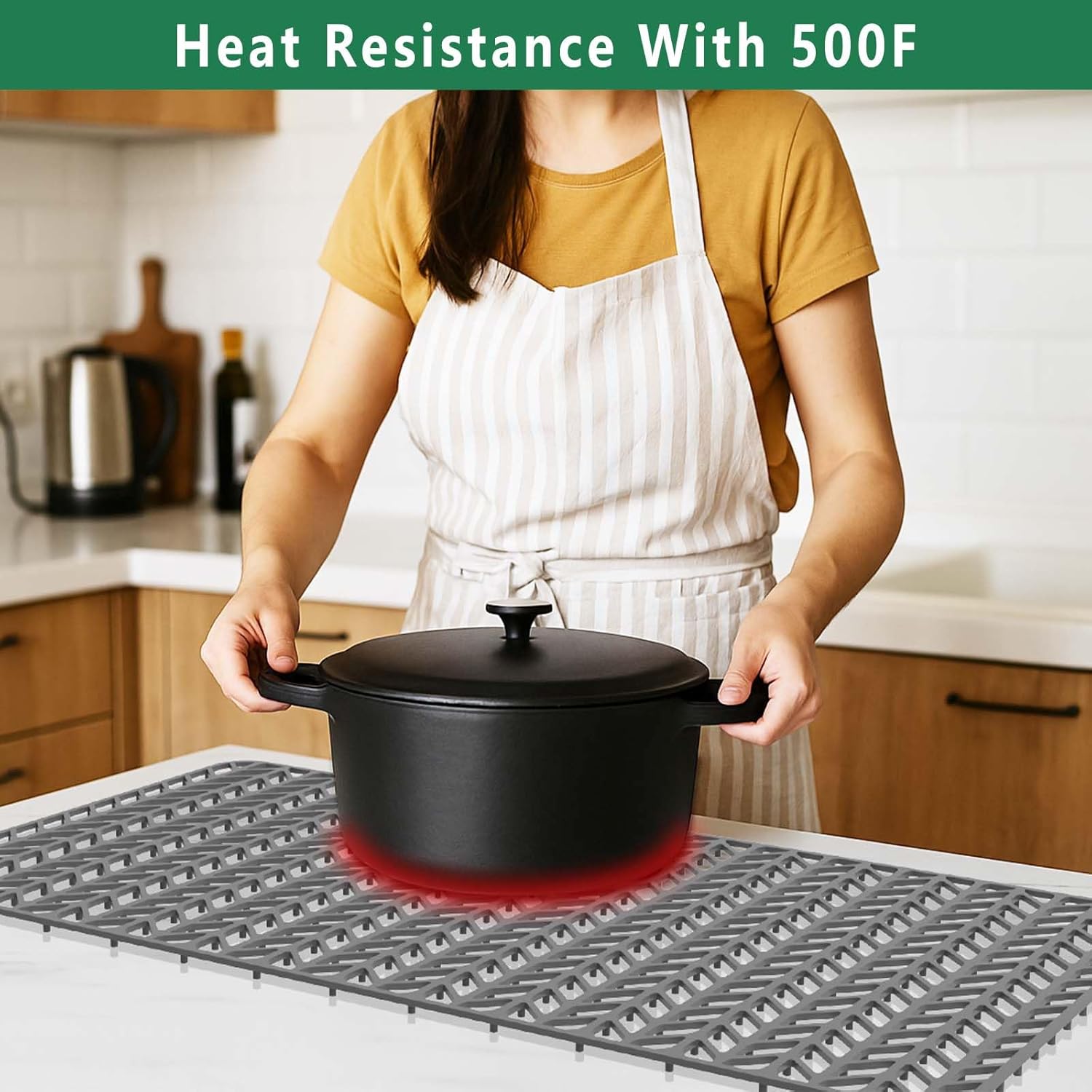 - 【Easy to Use】Our kitchen sink mats and protectors can handle up to 500f, heat-safe silicone for placing pots and pans in sink directly from stove, the superior finish looks sleek, modern and stylish in your kitchen sink