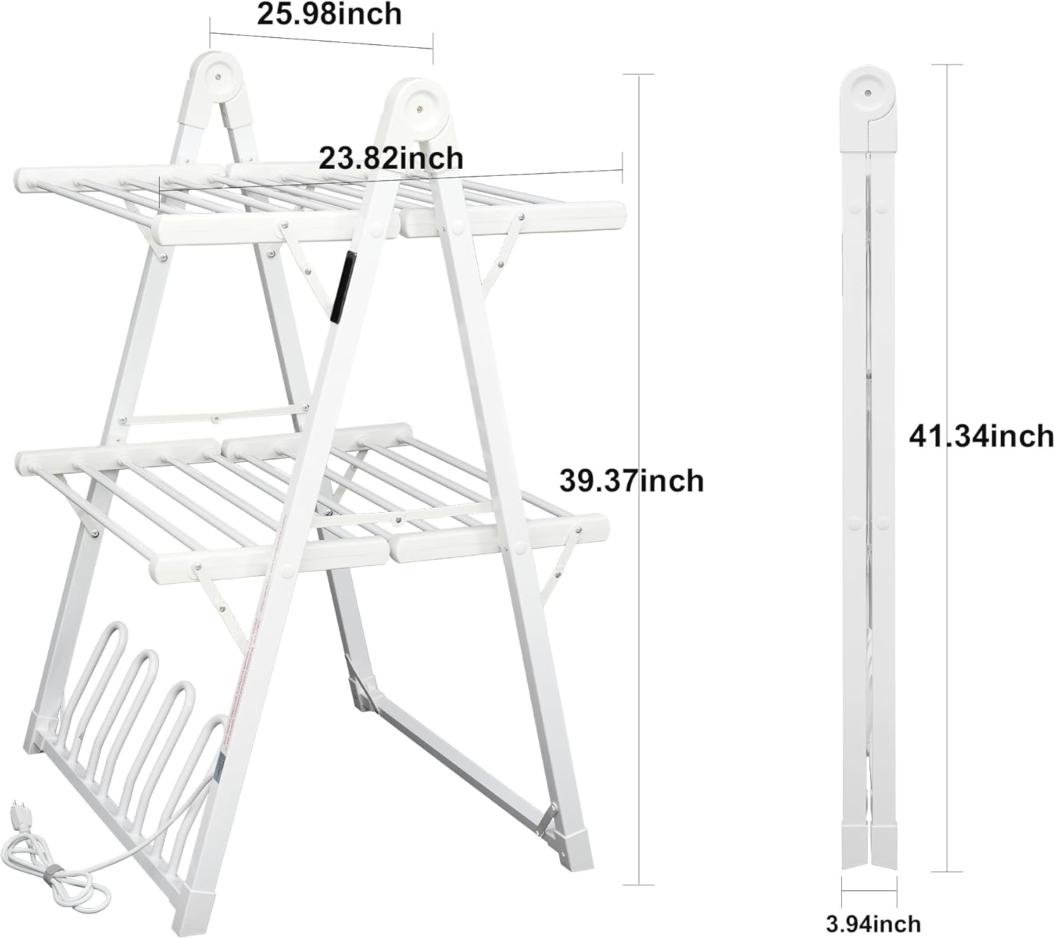 - 【Space-Saving Fold-Flat Design】Constant-Temp Heated Clothes Dryer– Collapses to 41.34"x25.98"x2.83"in Perfect for Dorms,RVs & Bathrooms!This rapid-folding electric drying rack delivers shrink-proof 3X faster drying vs air-drying, dominating high-humidity conditions with ease.