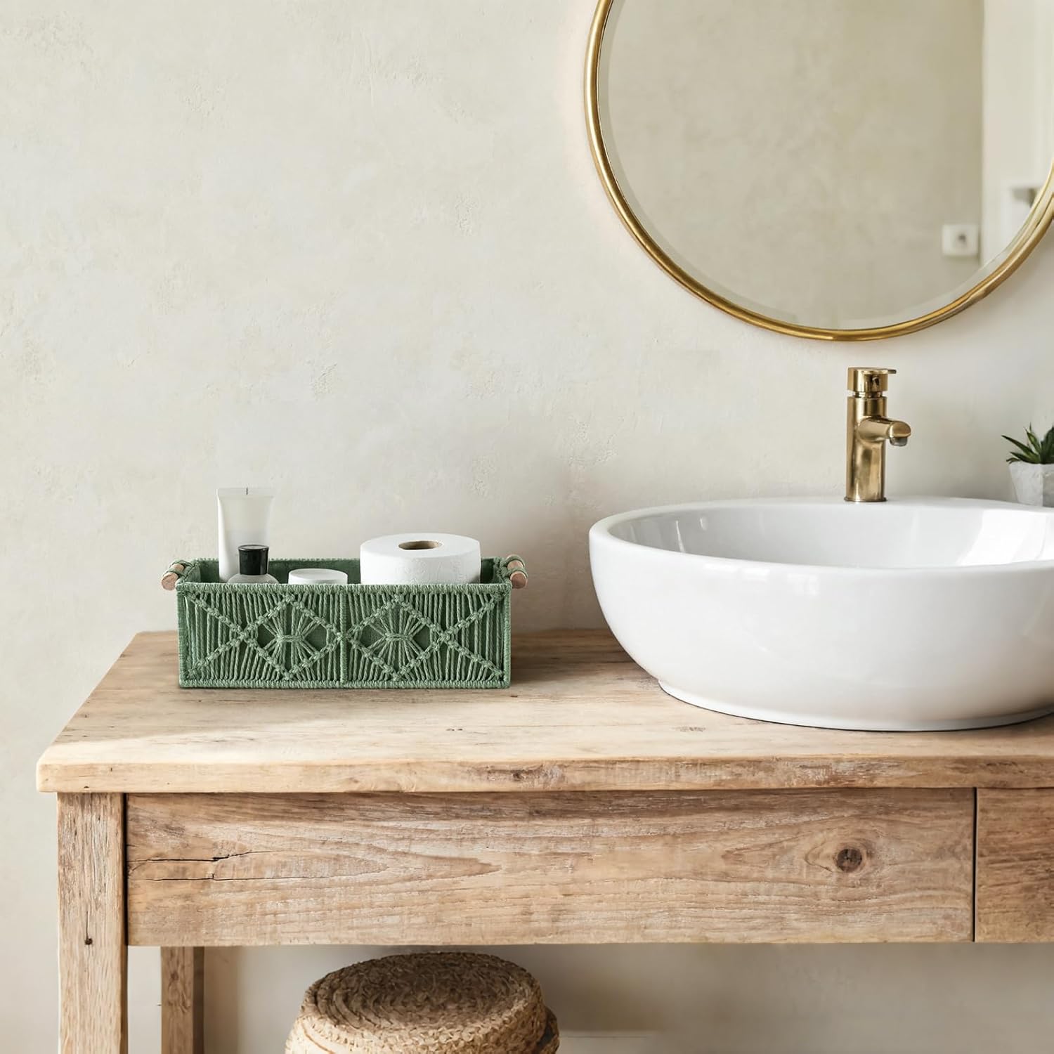 - PERFECT ADDITION TO BATHROOM DECOR. These cute little baskets evoke a warm and classy taste that both works harmoniously and aesthetically. The neutral colors and sleek design means that it will fit perfectly into any home. Use it to decorate, organize and store items, keep the home clean and comfortable. --( It is protected by intellectual property right.)