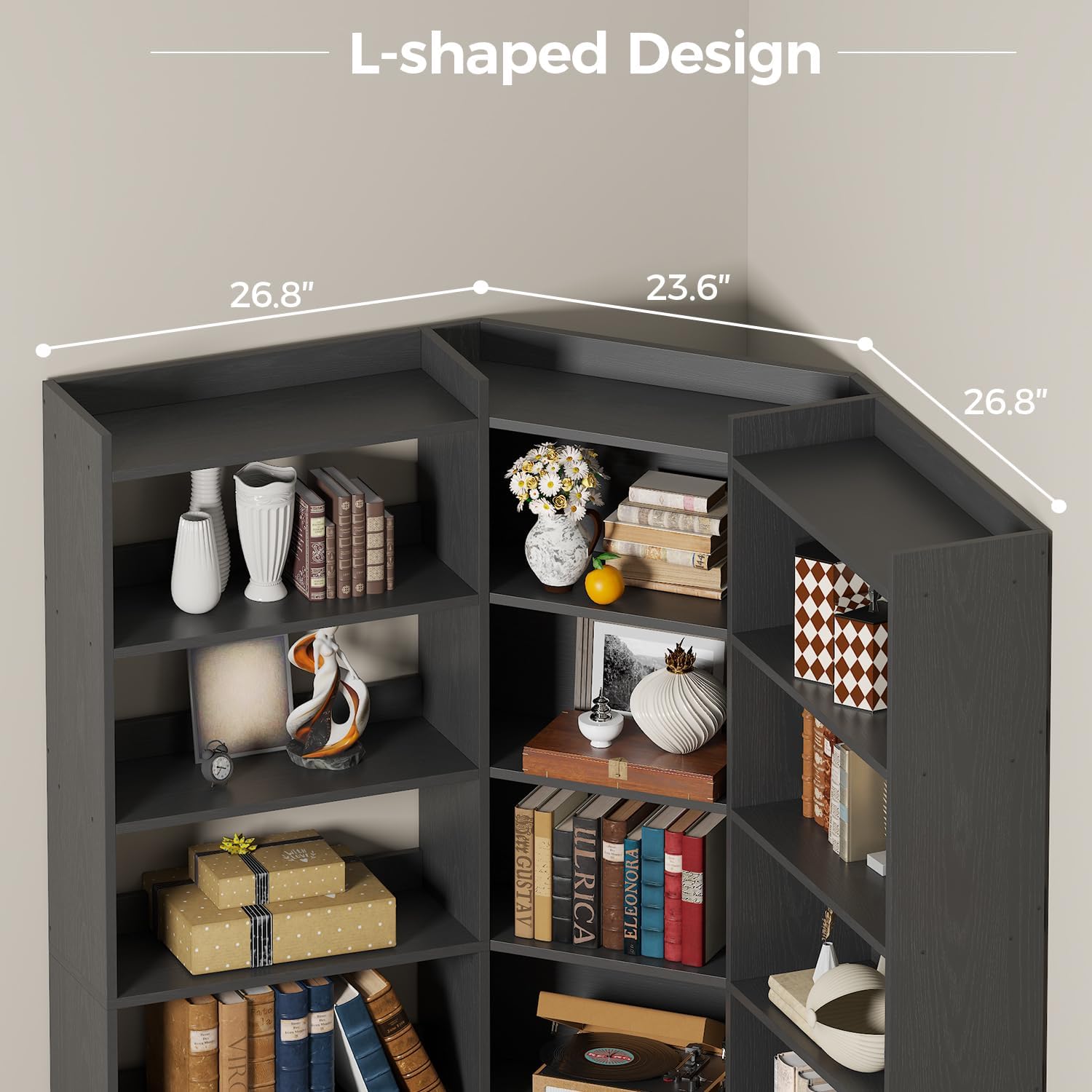 - Sturdy Construction: Crafted from high-quality medium-density fiberboard, this Corner bookshelf is designed for durability, ensuring it can withstand the weight of your belongings while featuring an anti-tipping mechanism for added safety. Each shelf can hold up to 80 lbs