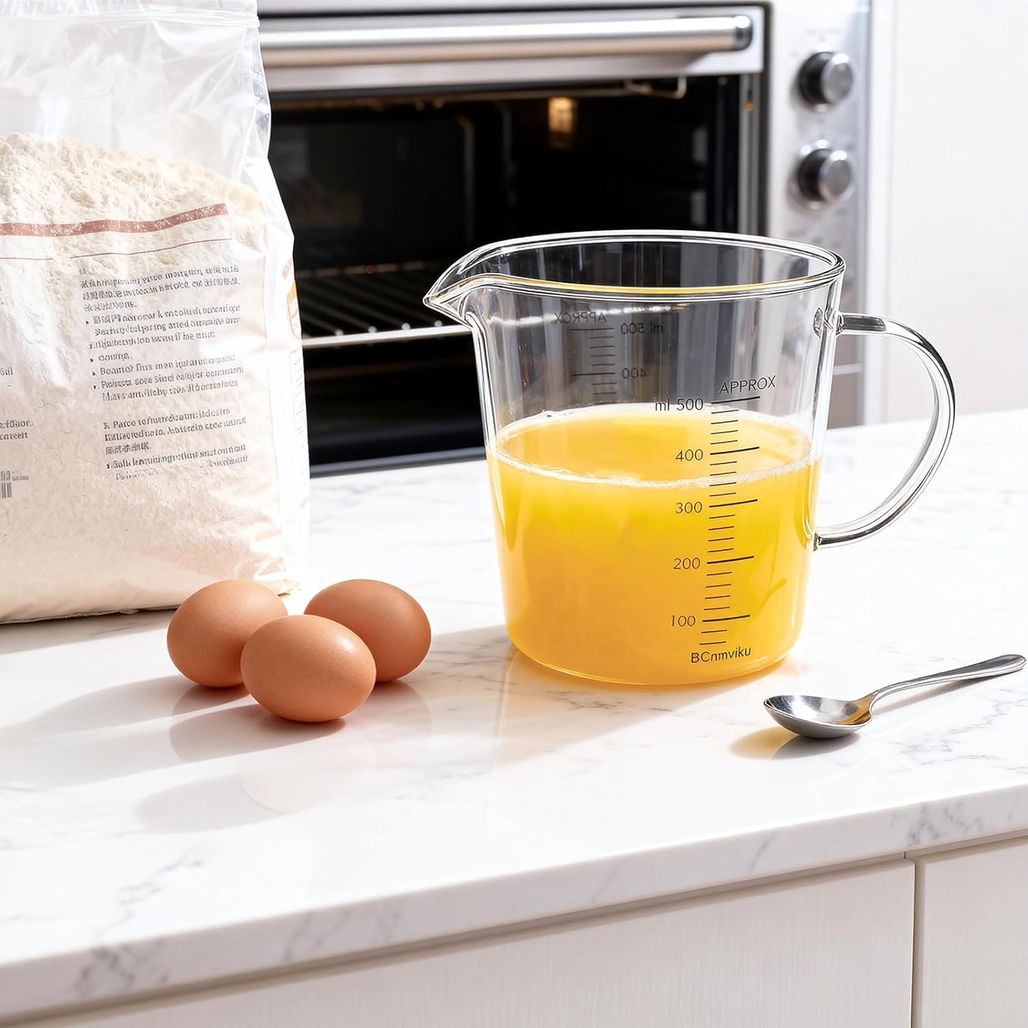 - 【Comfortable and Lightweight Design】: The high borosilicate glass measuring cup is lightweight and easy to handle, reducing strain on your wrists. This makes it perfect for various kitchen tasks, whether you're cooking, brewing coffee, or baking