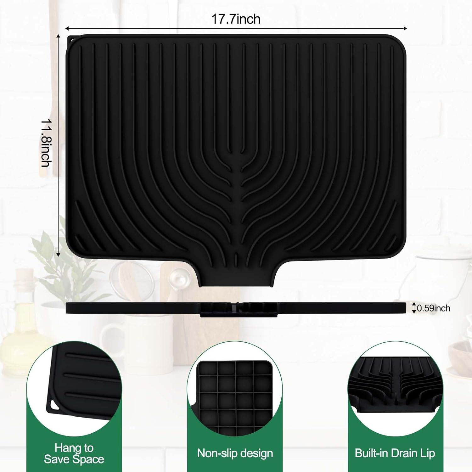 GUUKIN Silicone Dish Drying Mat,17.7" x 11.8 " Drying Matt Kitchen Counter, Dish Drying Rack Mat, Easy Clean Pad for Countertop Protection, Multi-Functional Use, Not applicable Bumps up sink (Black)