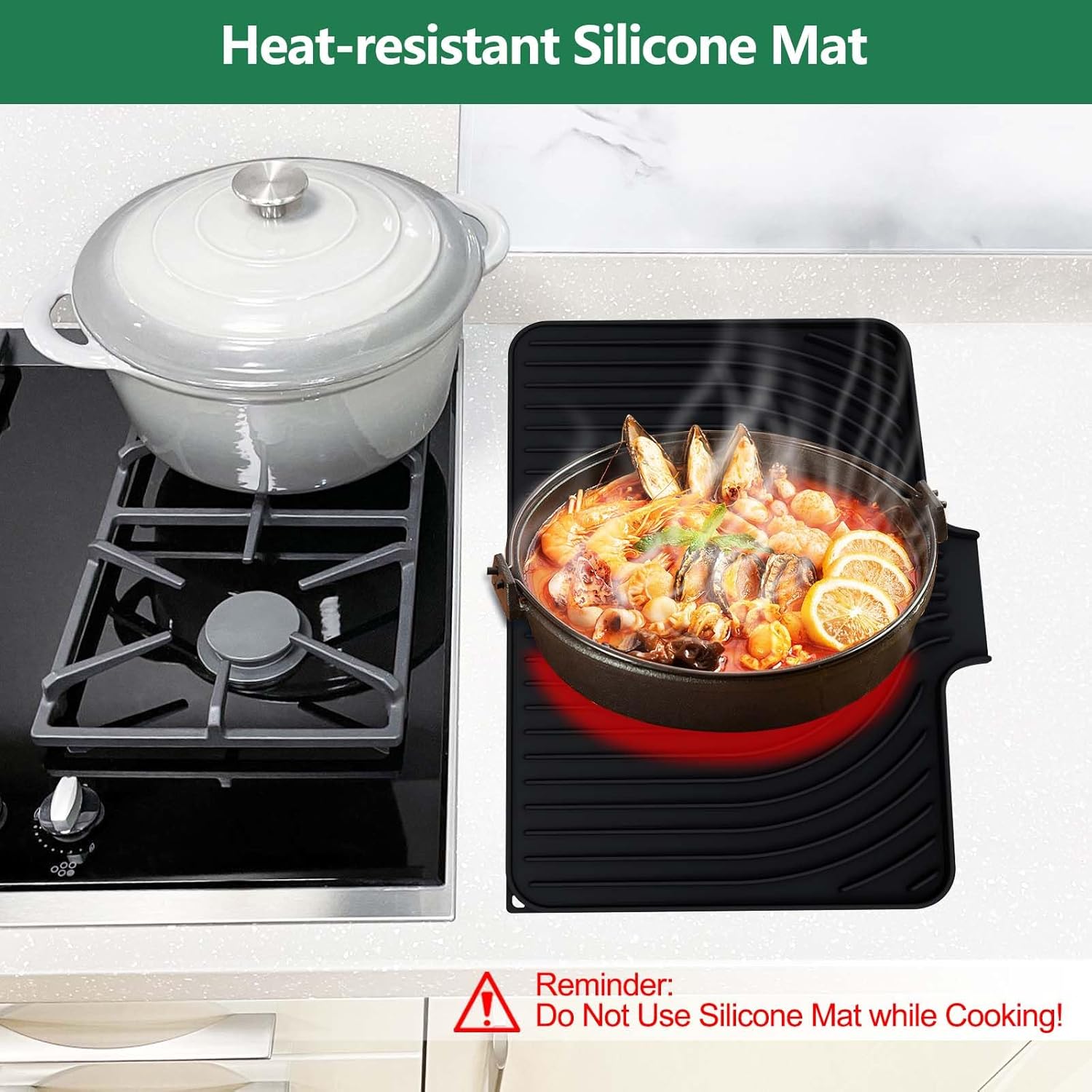 - Anti-Slip and Heat-Resistant: Dish mat drying kitchen mat has a great anti-slip design, keeping dishes, fruits, veggies and glassware steady. Besides, it's heat-resistant up to 450°F (230°C), safeguarding countertops well from hot pots and appliances