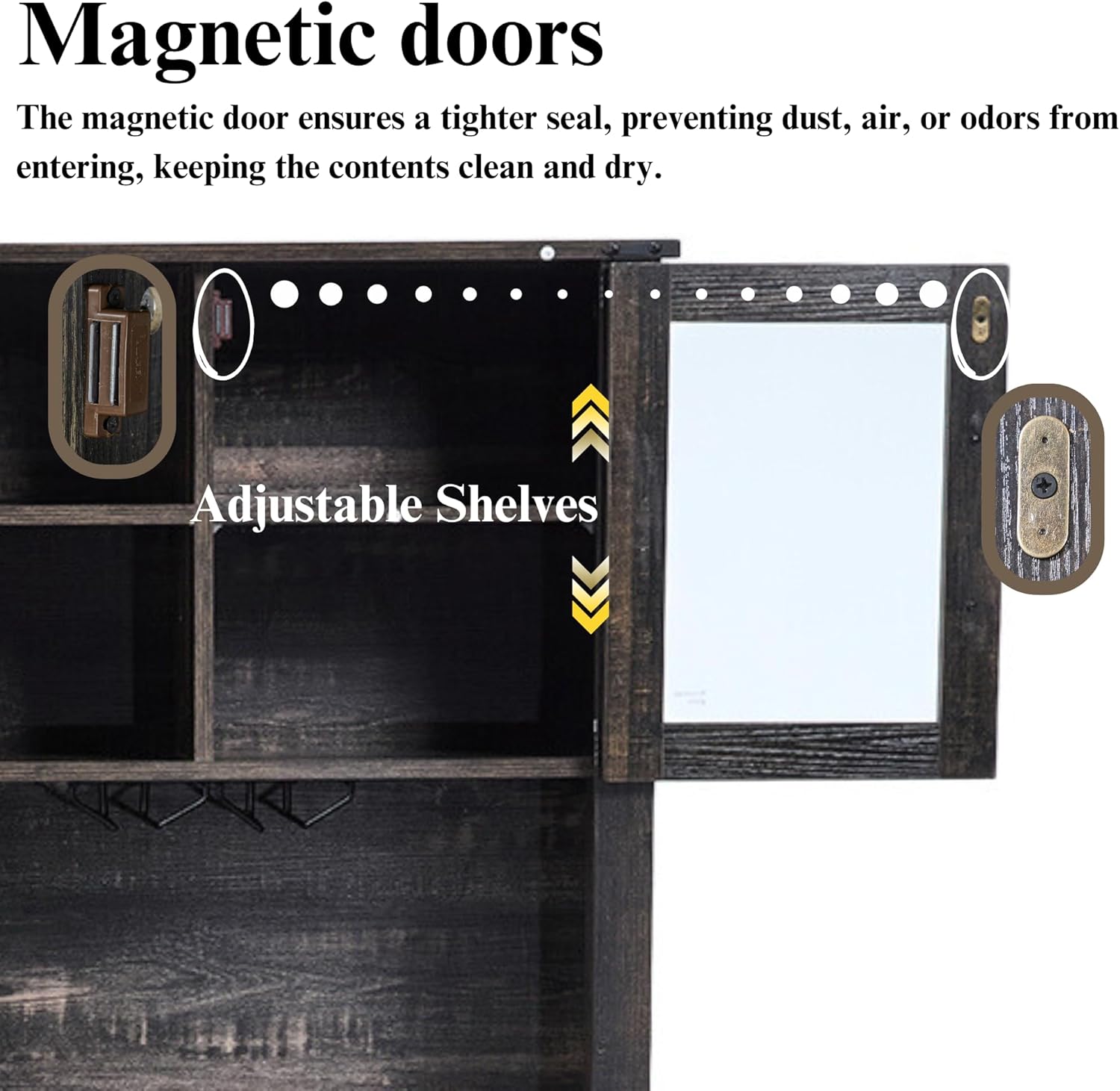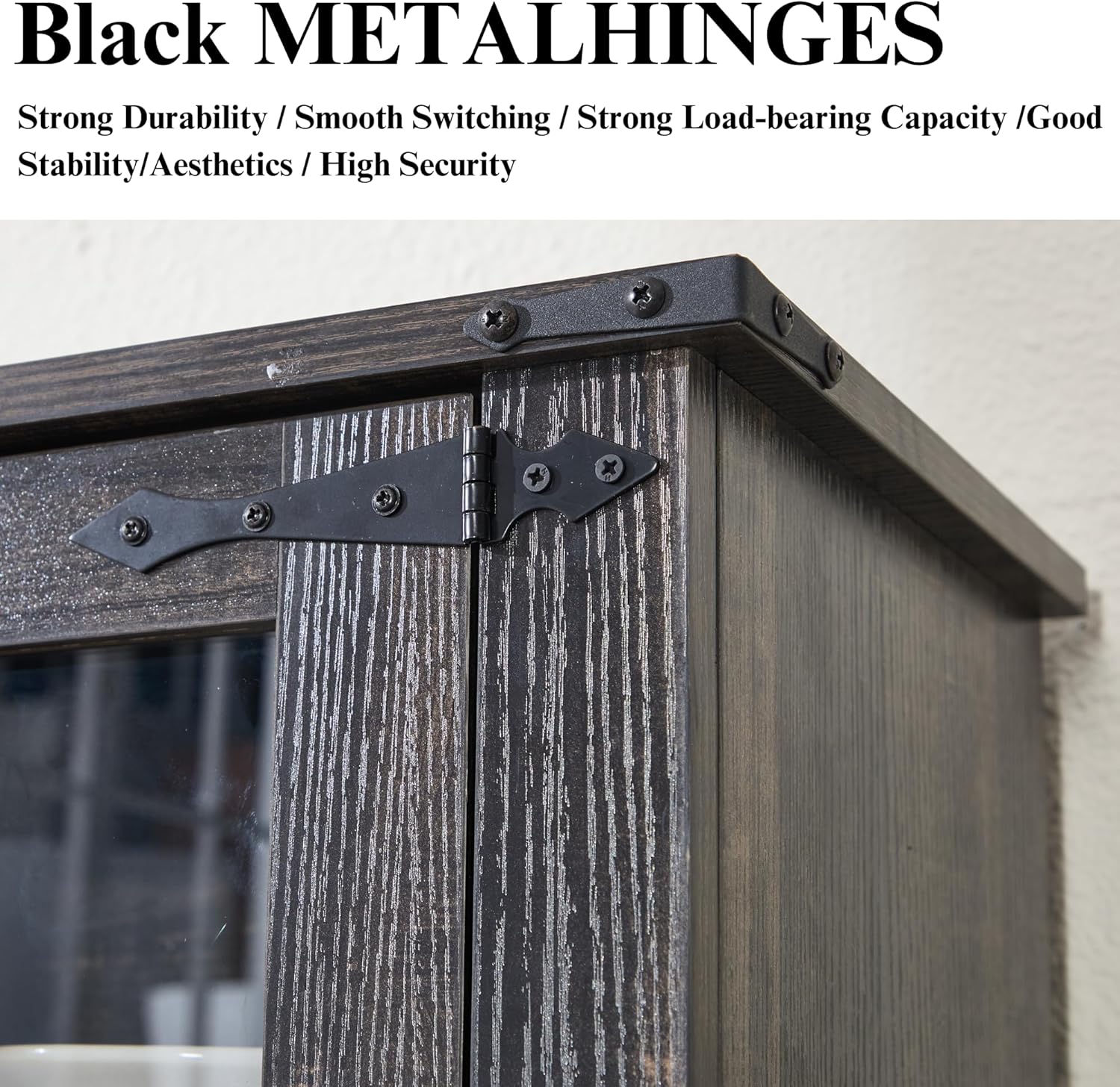 - Wine Glass Rack- Sliding Barn Doors- The two sliding barn doors feature a high-quality rail system, operating smoothly and quietly to save space while adding a retro-industrial touch. Inside, a spacious interior with three adjustable shelves accommodates wine bottles, glasses, or kitchen items, with the flexibility to fit standard-sized wine bottles for effortless storage