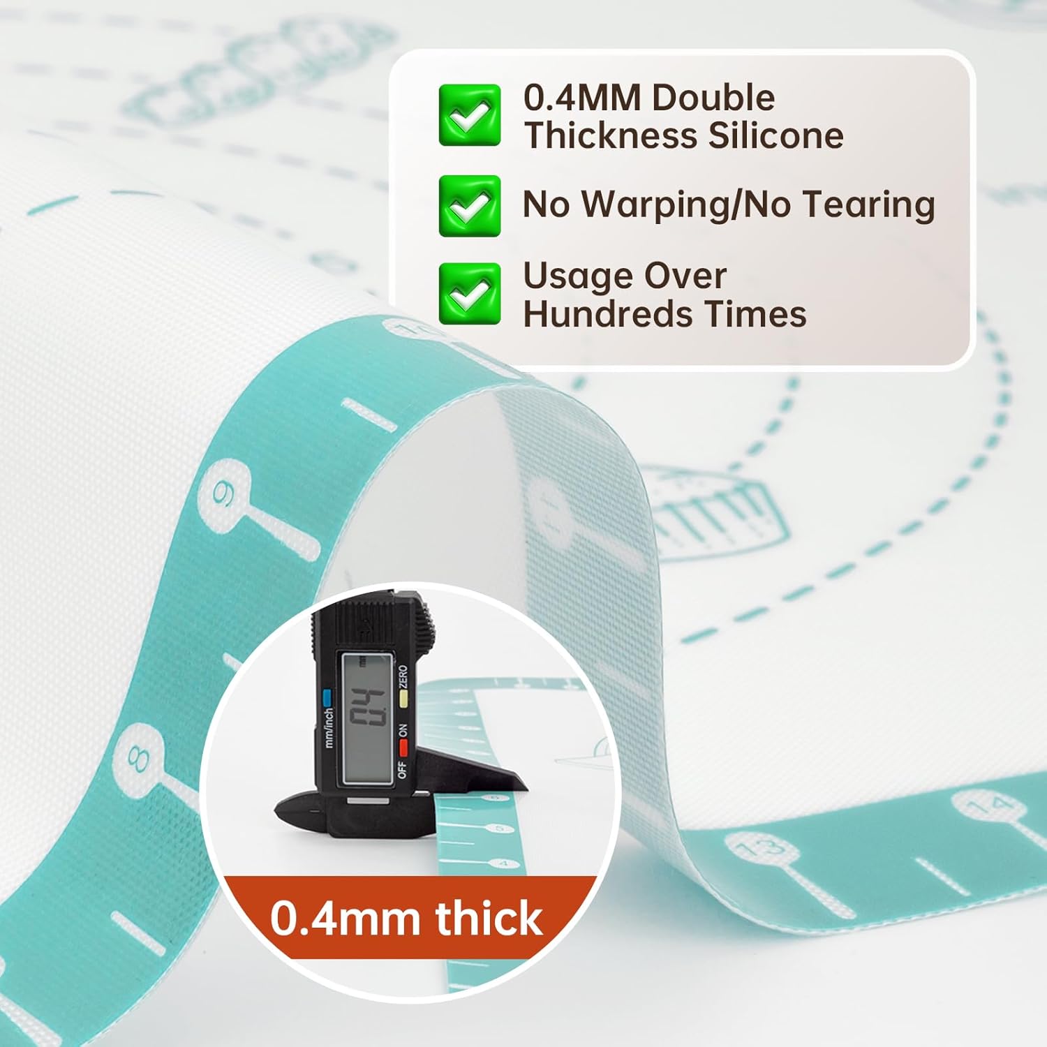 Non Stick Silicone Pastry Mat with 10 Quick Recipes ๏ผSilicone Mat for Dough Rolling Baking Sheet for Cookies, Pizza,Bread, Surdough,Fondant Mat for Kitchen Counter, Extra Large and Oven Safe
