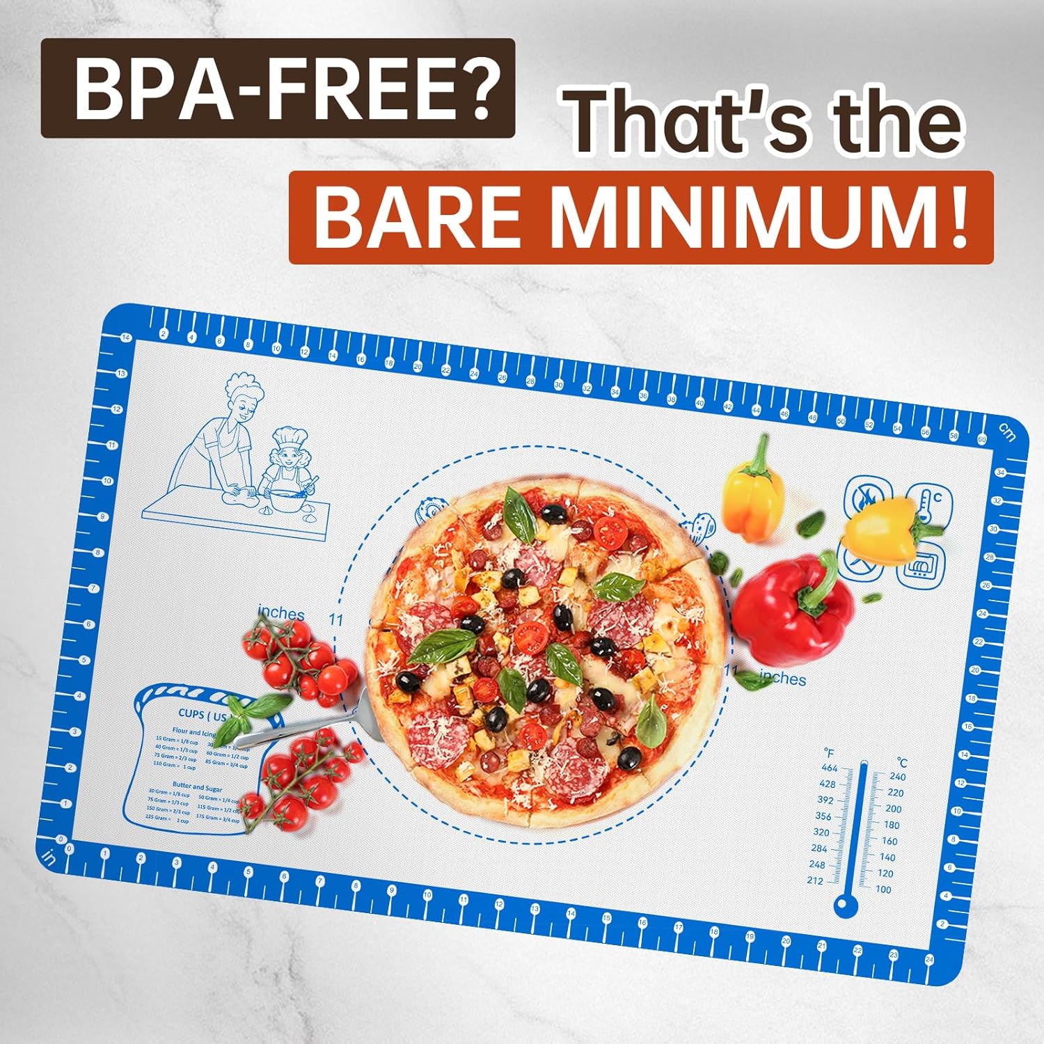 Silicone Baking Mat With 10 Recipes,Silicone Macaron Baking Sheet for Cookie, Pizza, Surdough, Pastry,Dough Rolling out, Non Stik and 480ยฐF Oven Safe
